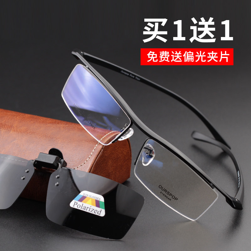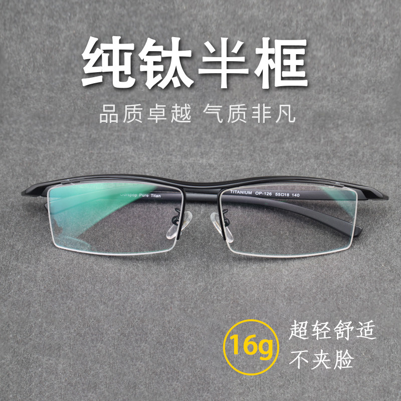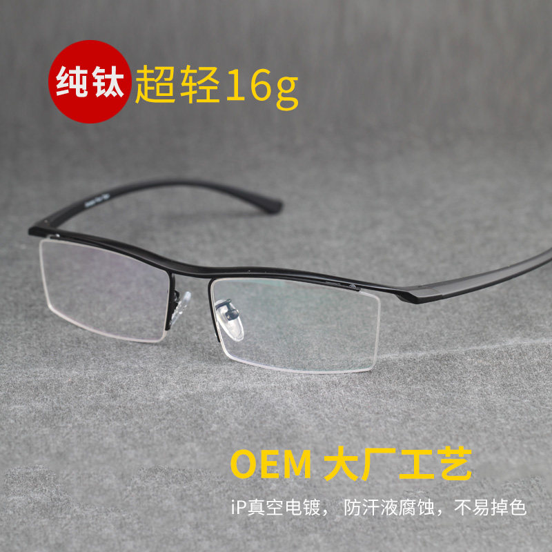 无框眼镜架钛架近视眼睛框男超轻商务大脸舒适配近视变色镜片8189
