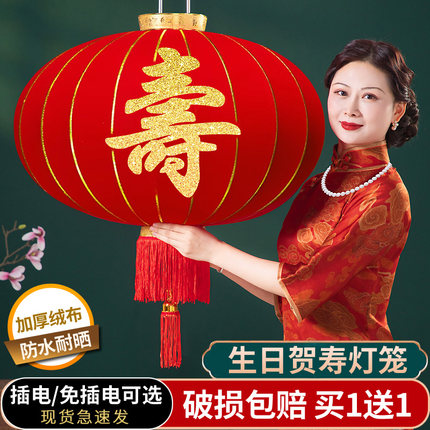 祝寿贺寿绒布大红灯笼过寿生日寿字别墅大门装饰户外防水阳台插电