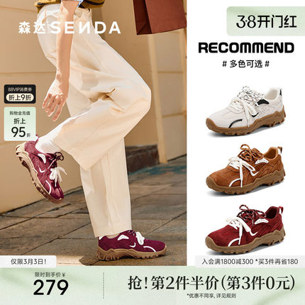 森达月牙德训鞋女秋季新款商场同款运动厚底休闲鞋复古板鞋XPY01