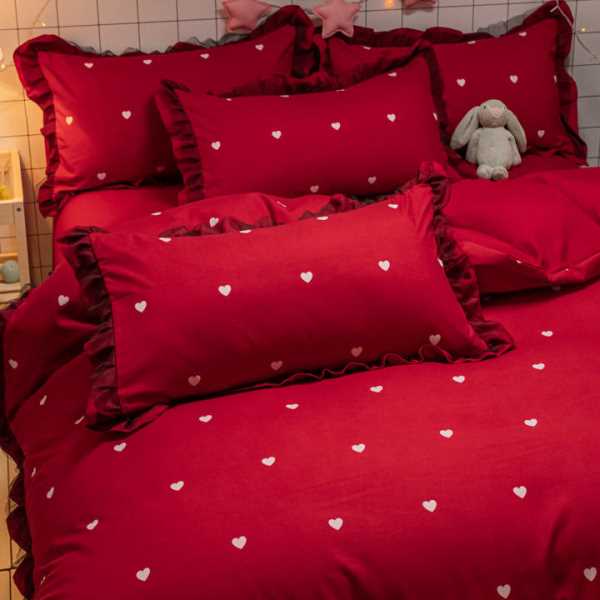 V3FP婚庆四件套结婚纯棉大红色六七件套新婚房床上用品床被