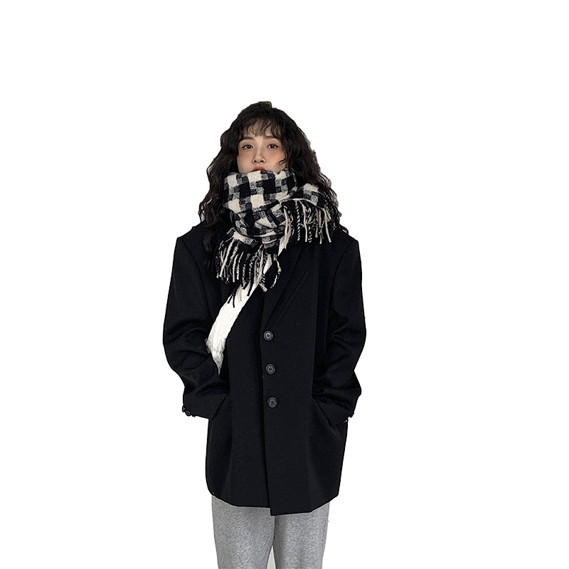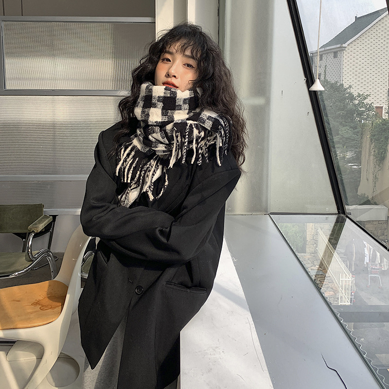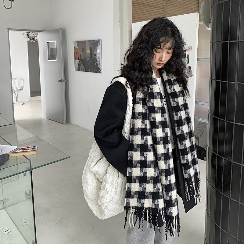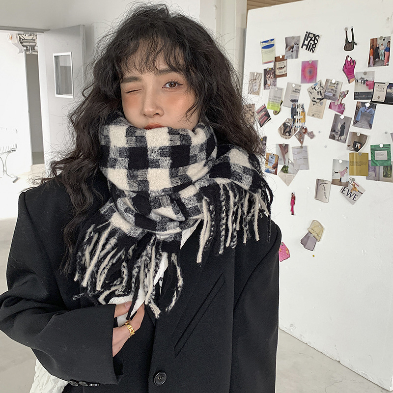 韩系黑白格子围巾女秋冬季经典格纹仿羊绒百搭保暖2021新款潮围脖