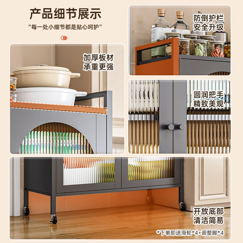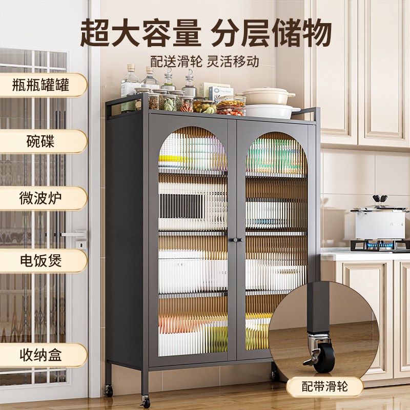 厨房置物架落地多层家用收纳柜子微波炉防尘多功能橱柜钢制储物柜