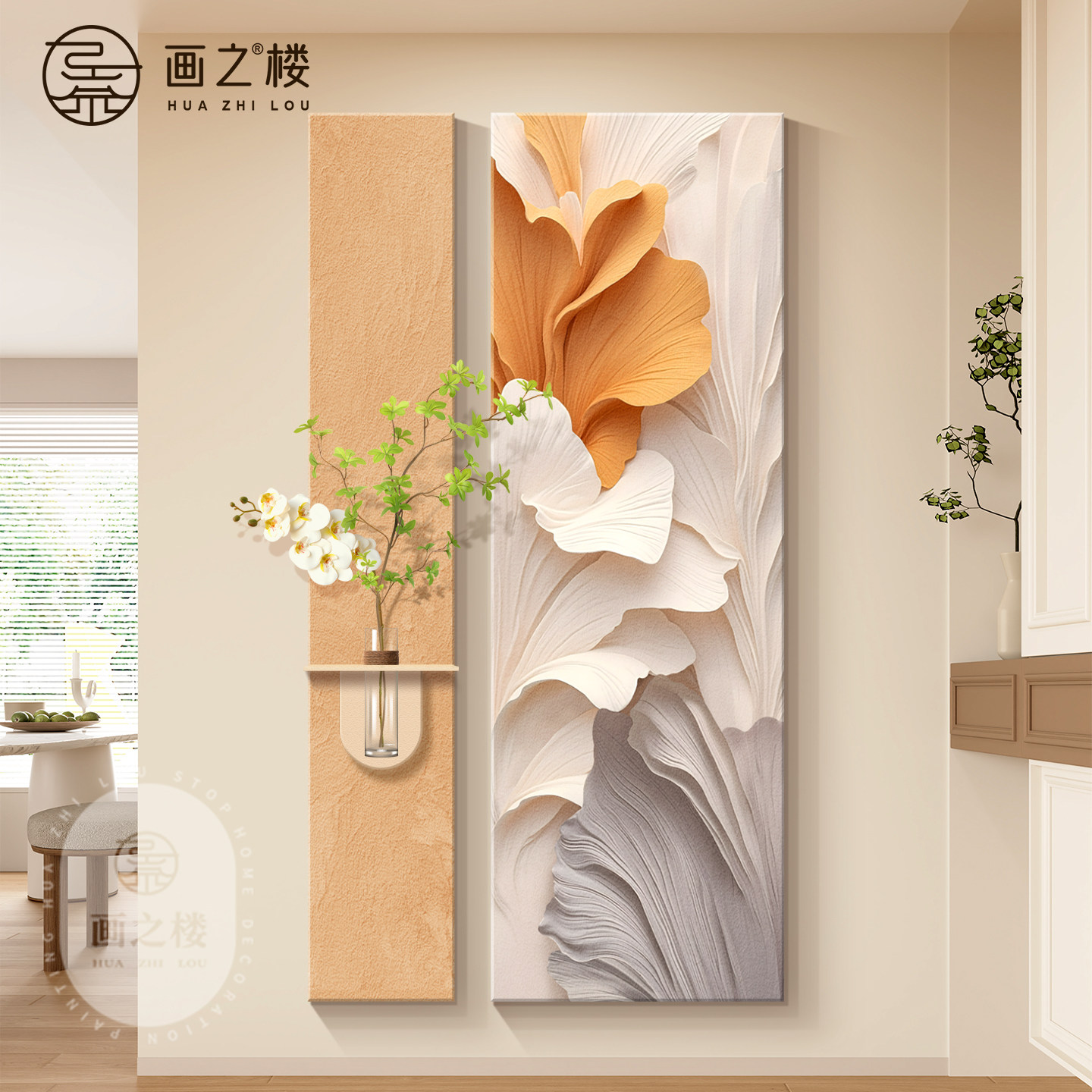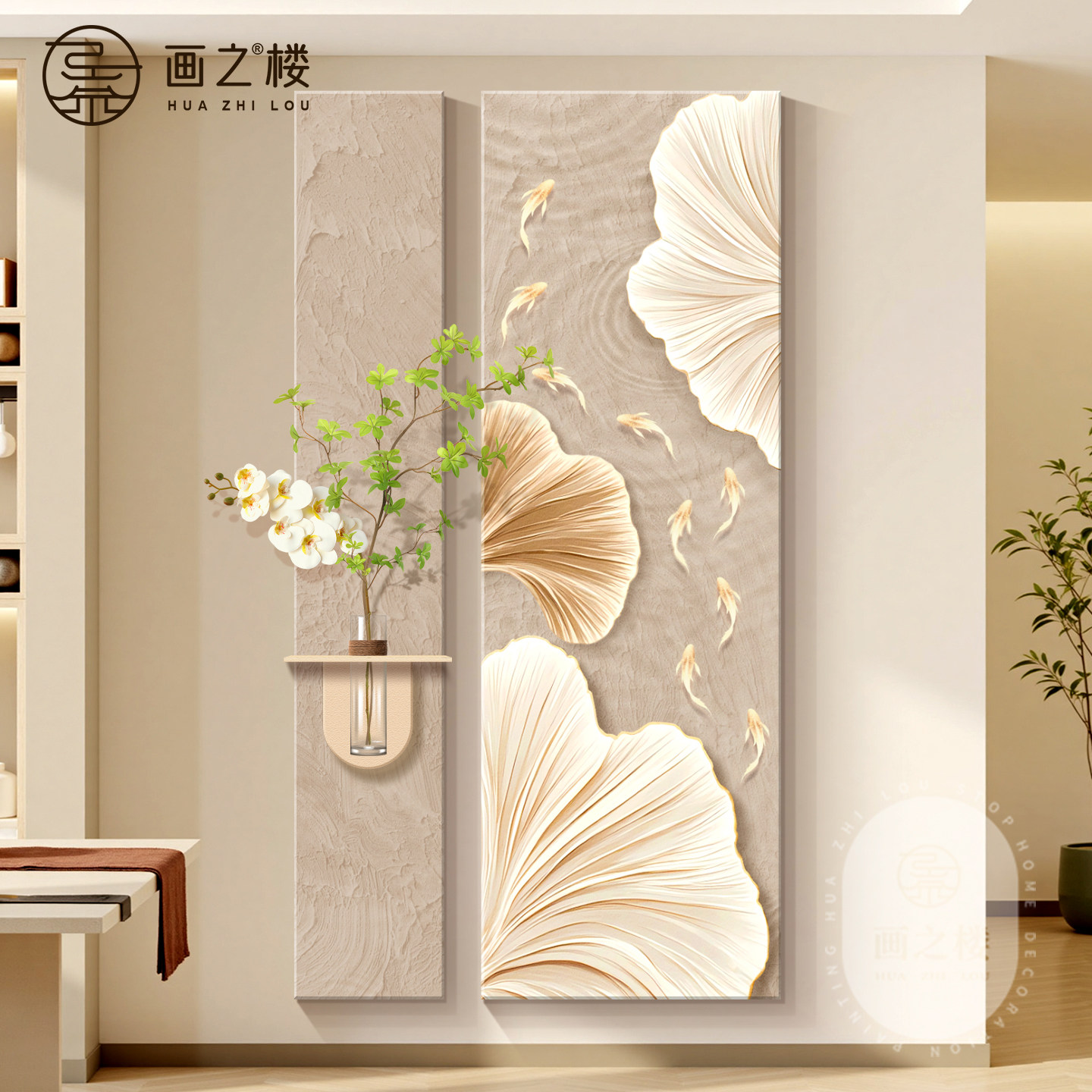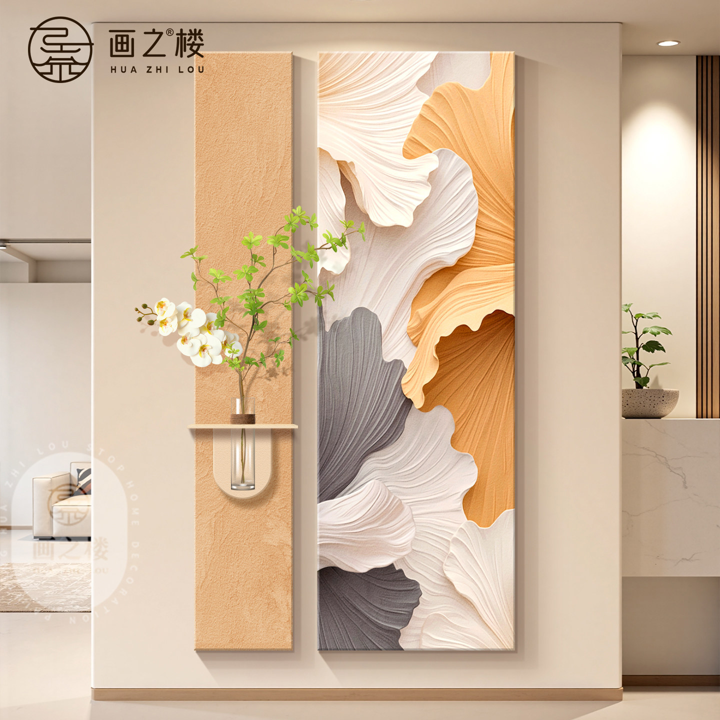 银杏叶入户玄关装饰画家大业大高级感走廊过道挂画肌理感砂岩壁画