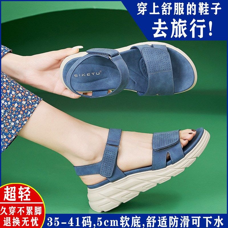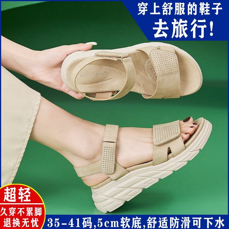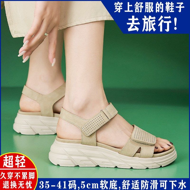 松糕厚底凉鞋女夏外穿2025新款不累脚平底M女鞋魔术贴中老年妈妈