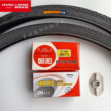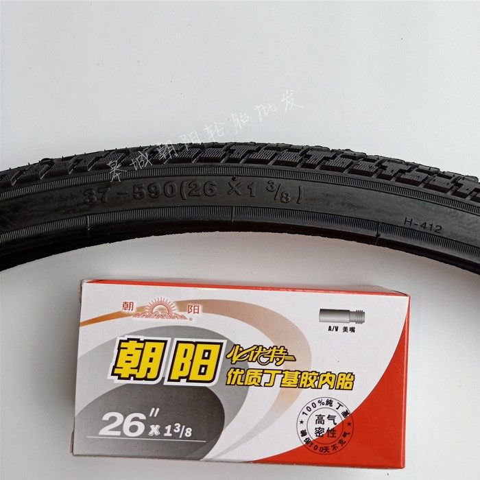 朝阳轮胎26X1 3/8自行车外胎37-590内外胎特加厚外胎加长内胎美嘴