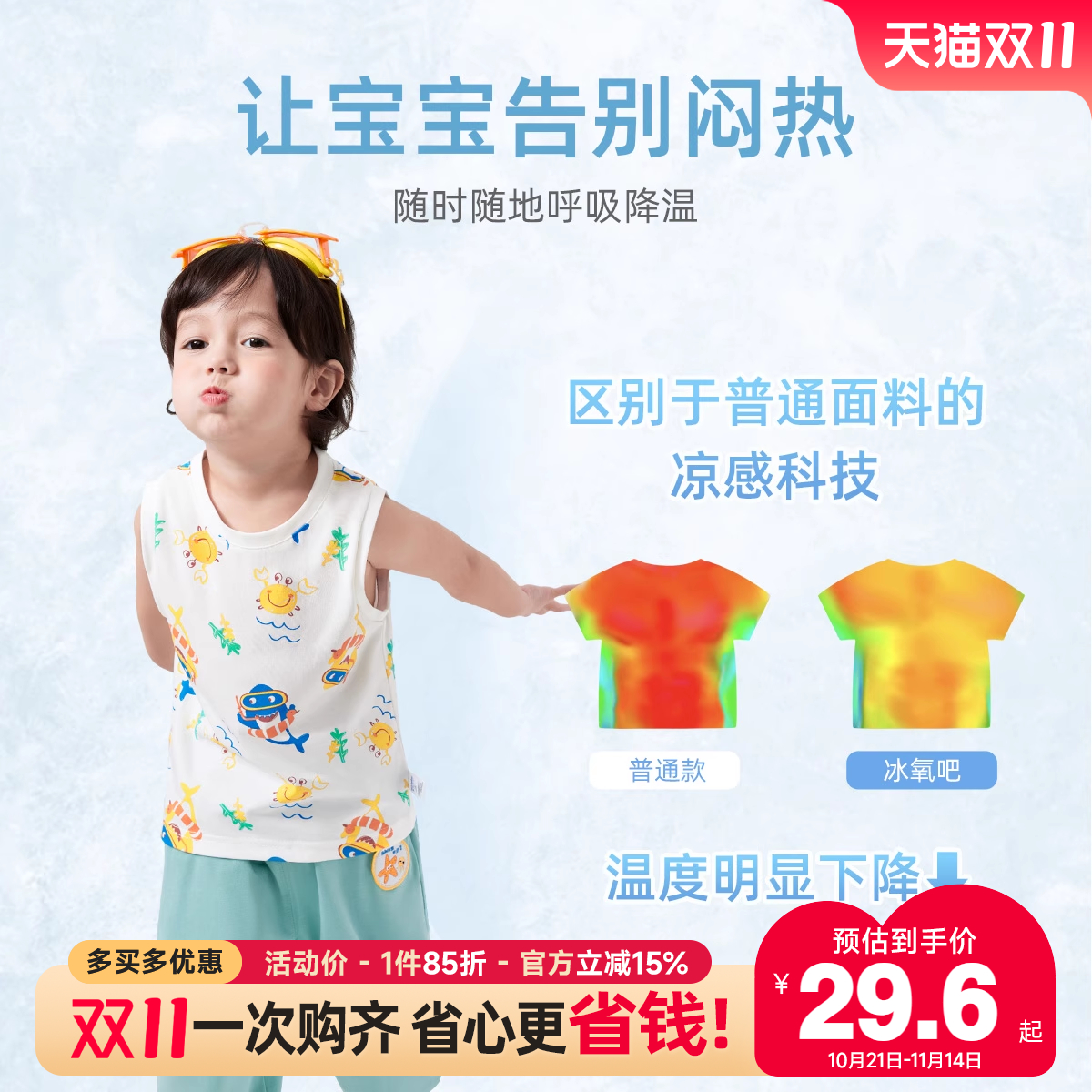 男童背心夏季儿童无袖T恤女童夏款小婴儿薄上衣凉感1宝宝衣服夏装
