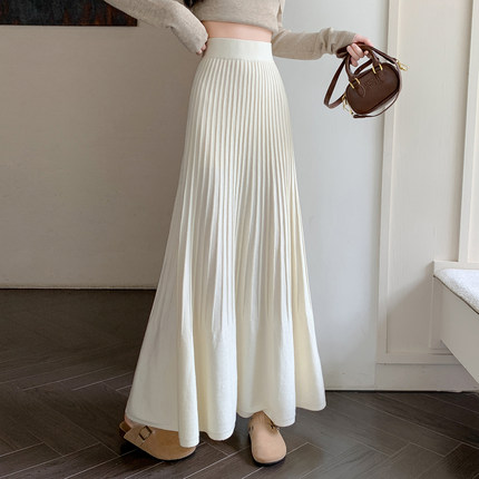 温柔风针织百褶半身裙女2025秋冬新款高腰垂感a字大摆加厚长裙子