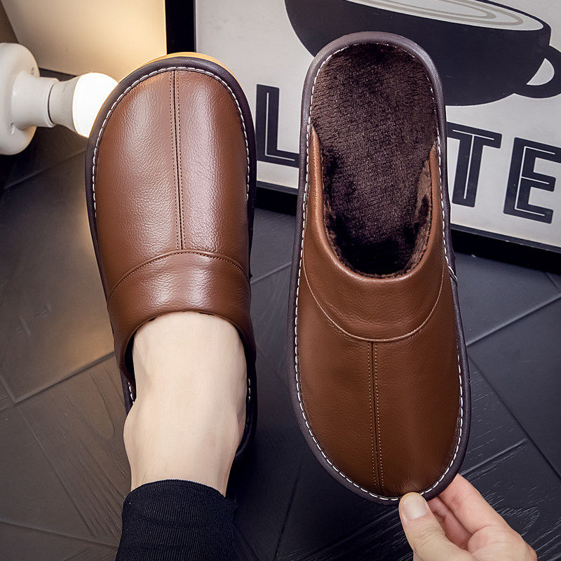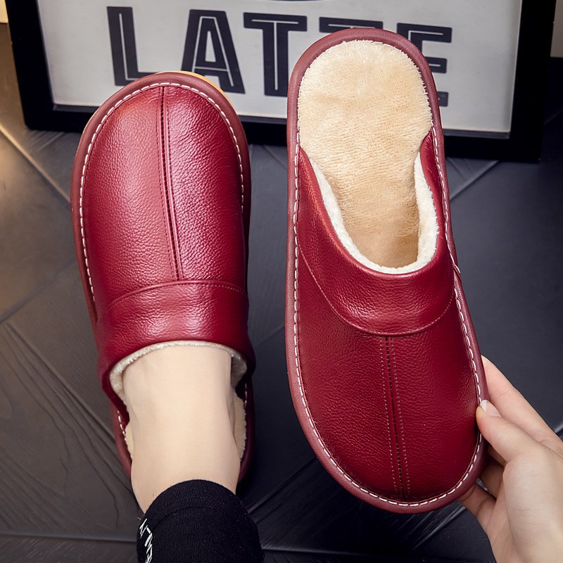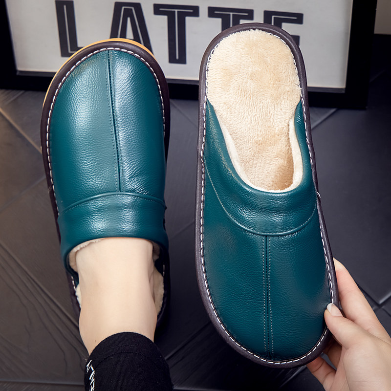 真皮棉拖鞋男女情侣秋冬季居家室内家用防滑纯牛皮保暖防水皮拖鞋