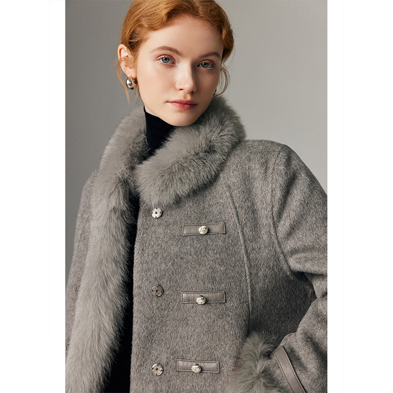 双面羊绒大衣女狐狸毛羽绒服鹅绒