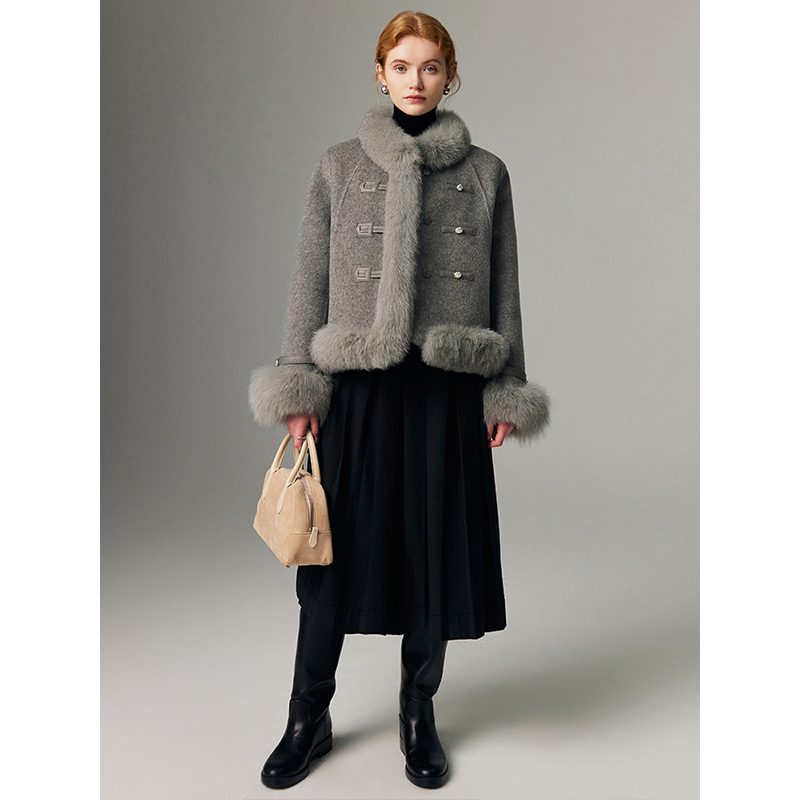 双面羊绒大衣女短款2025年新款洋气狐狸毛皮草羽绒服鹅绒内胆加厚