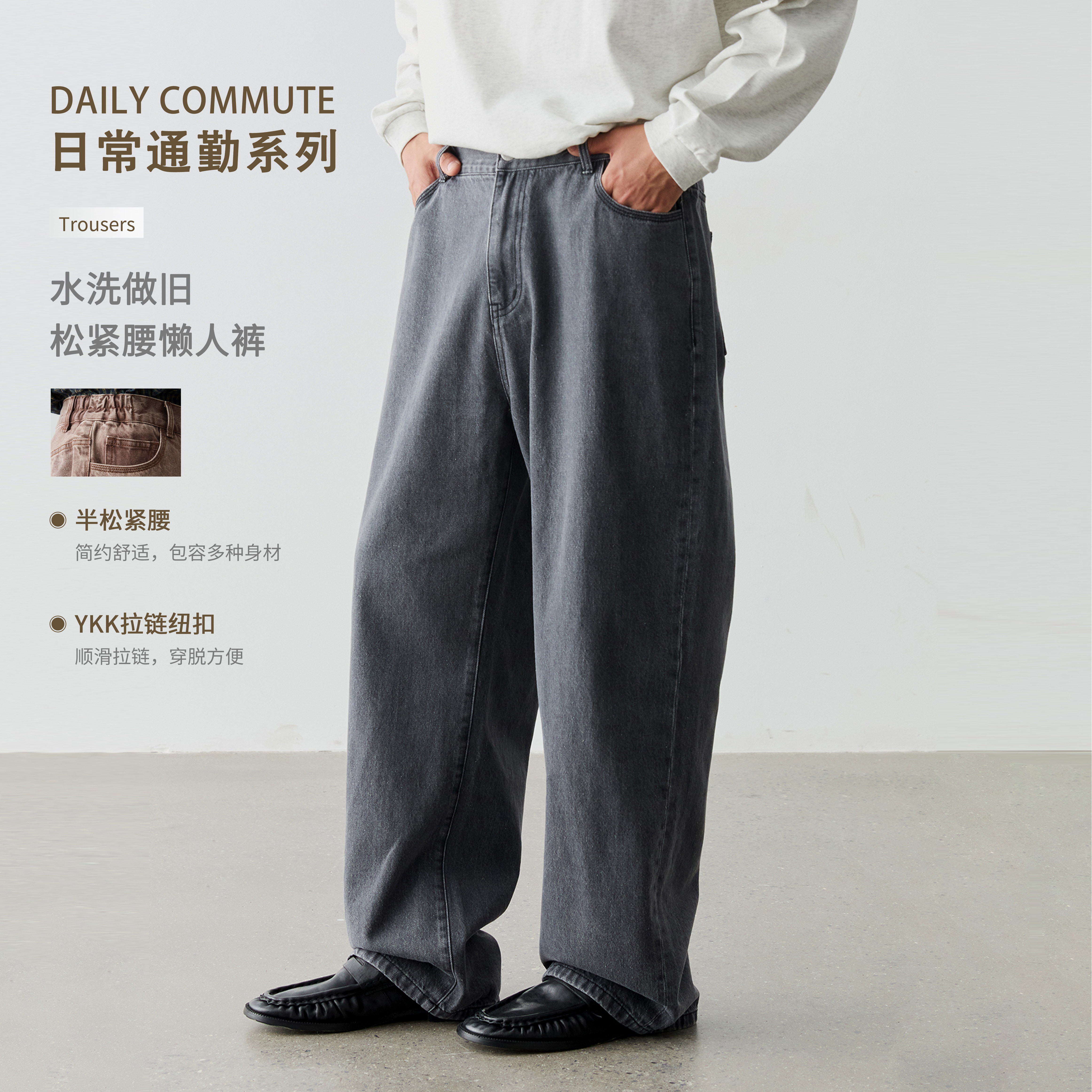 【限时7折】Vavu水洗做旧松紧腰懒人裤休闲百搭通勤牛仔裤直筒裤