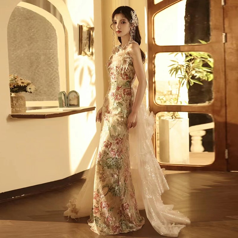 订婚礼服晨袍新娘2023新款轻婚纱结婚敬酒服孕妇小个子成人礼鱼尾