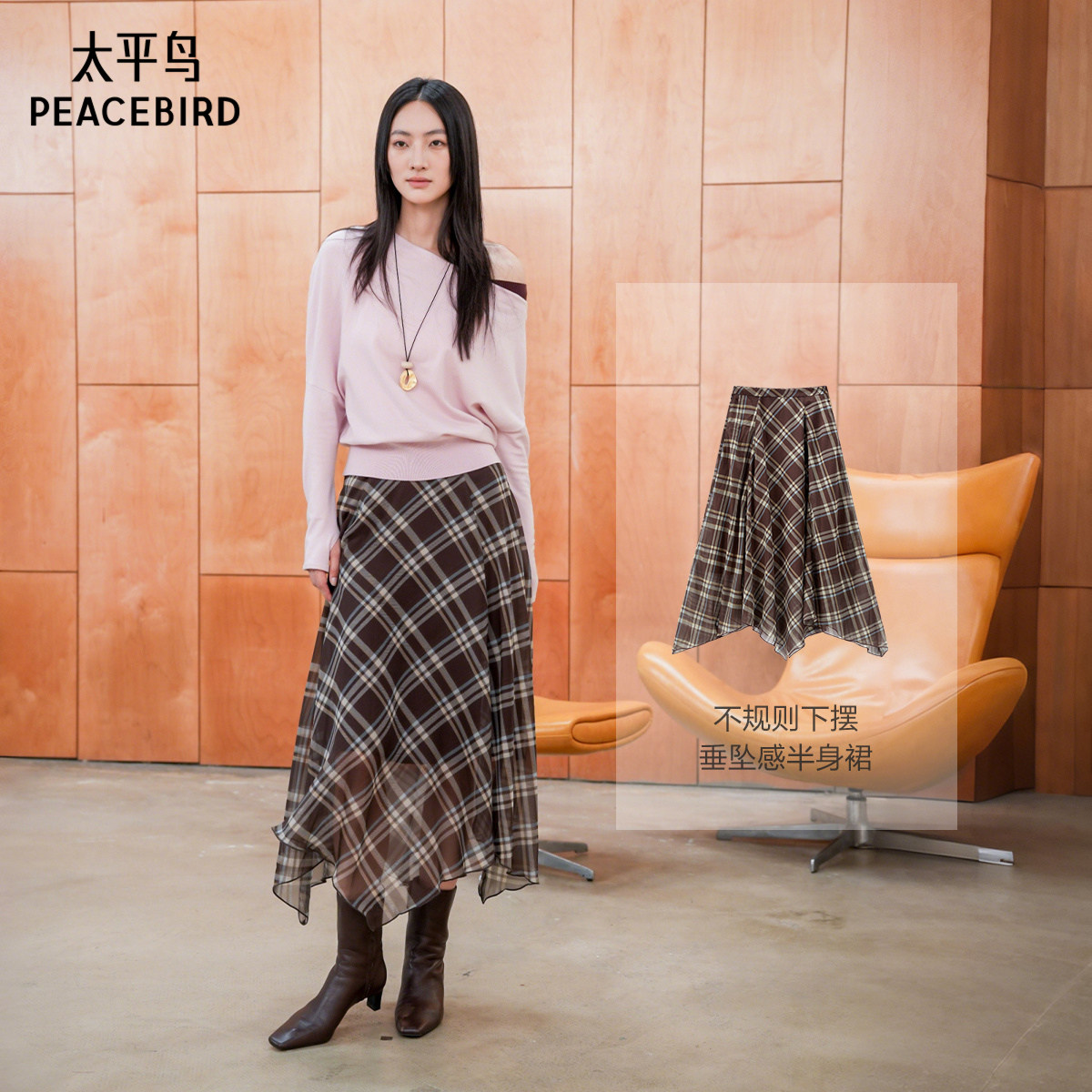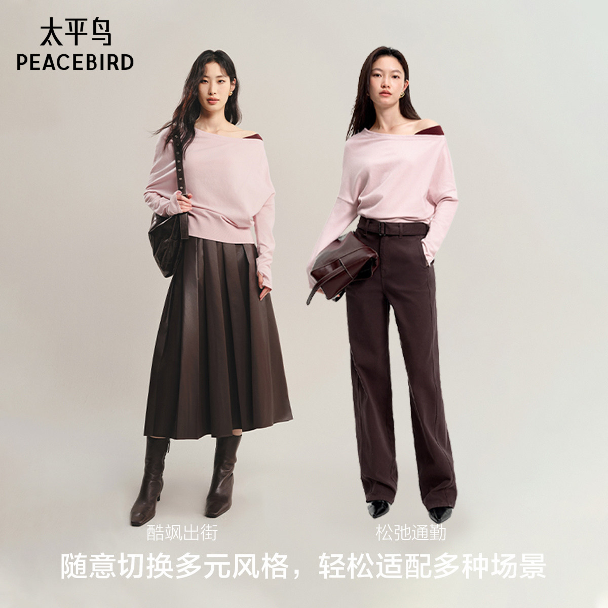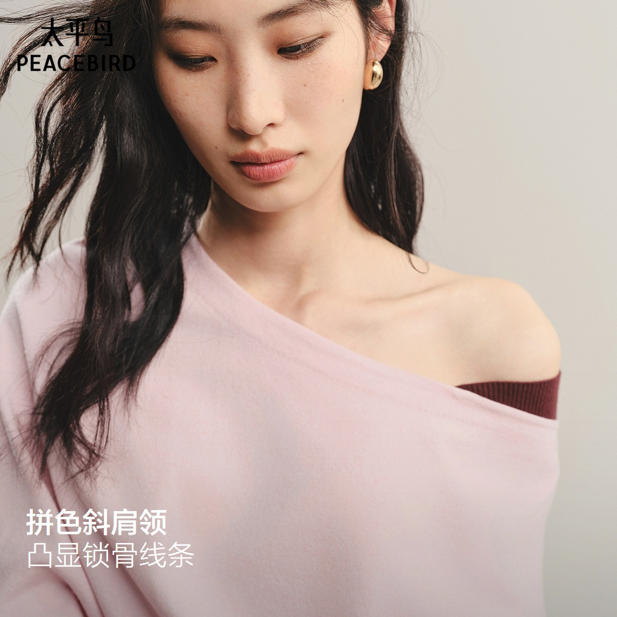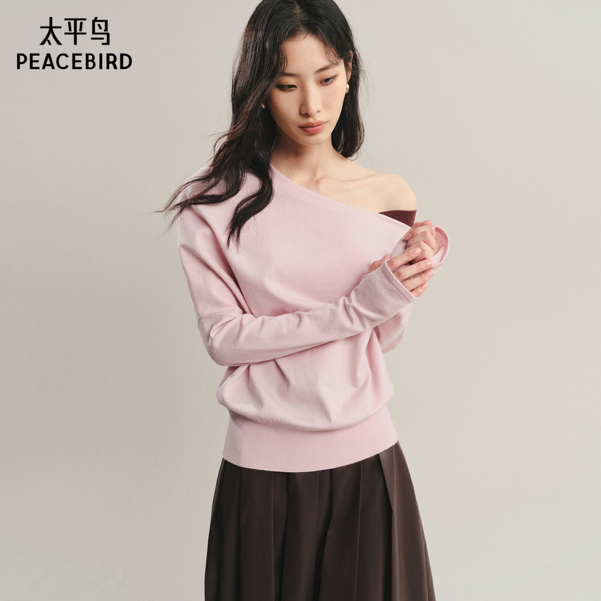 【商场同款】太平鸟 25秋季新款温柔斜肩长袖套衫针织衫A1EEF3502