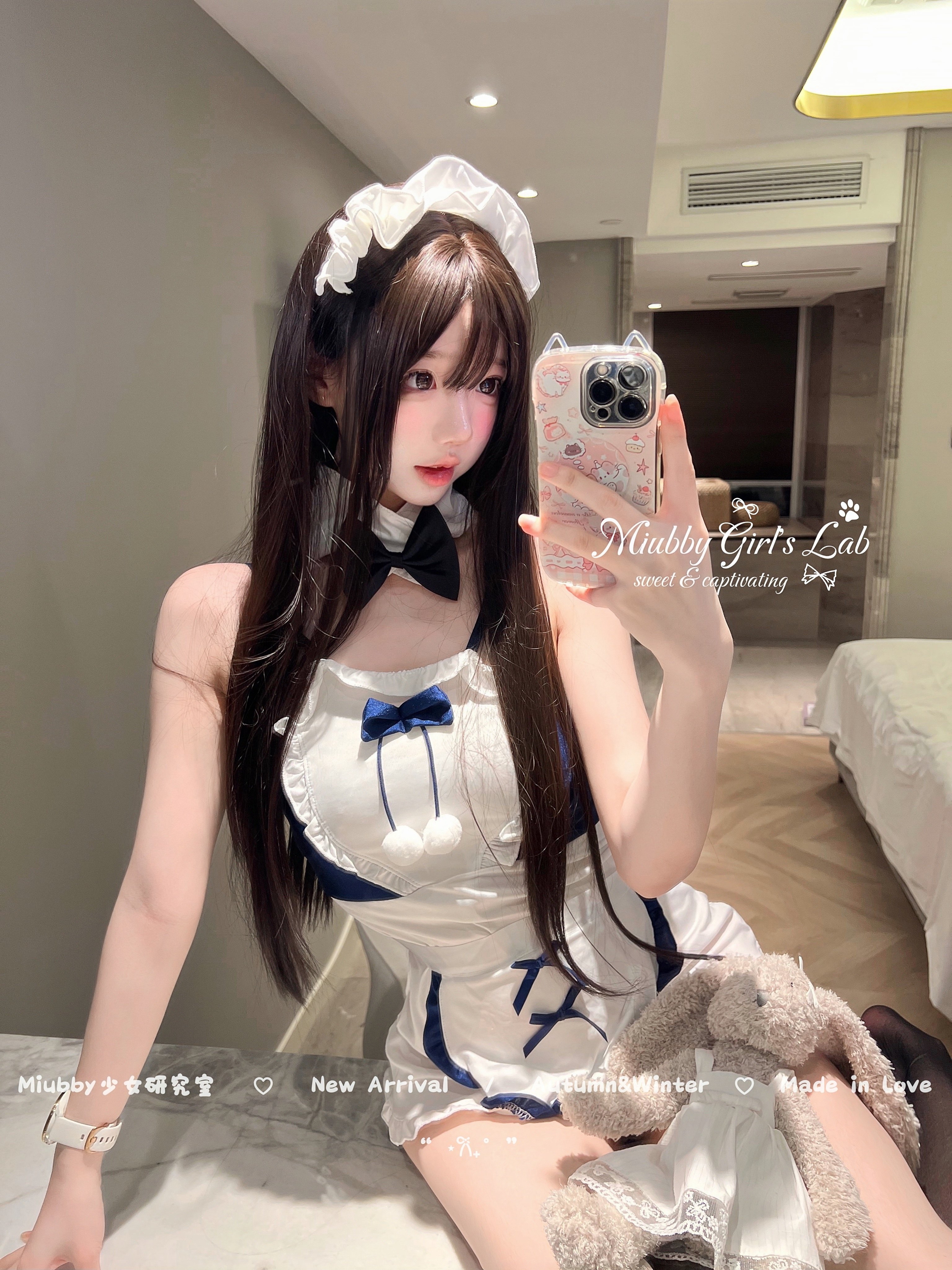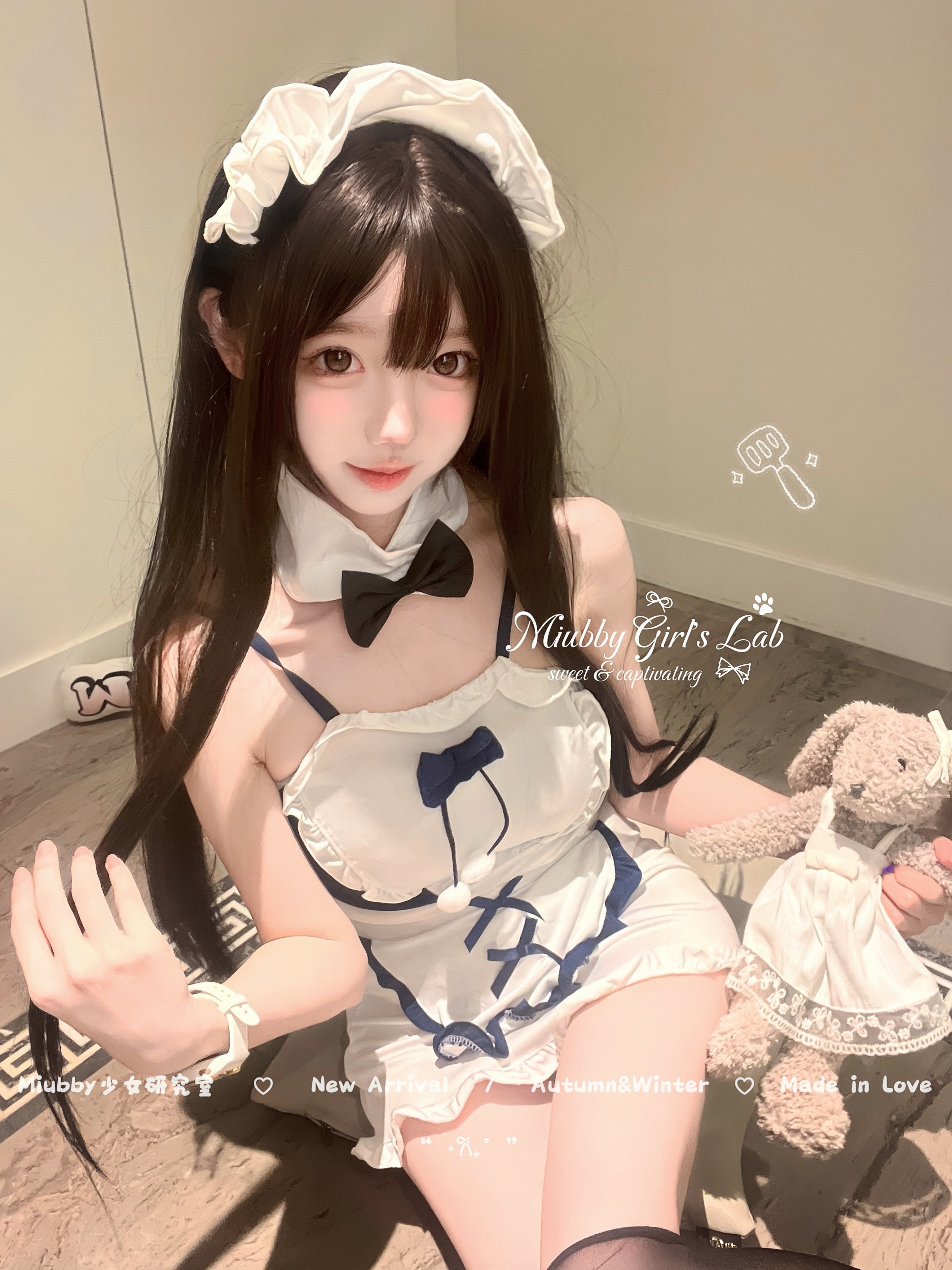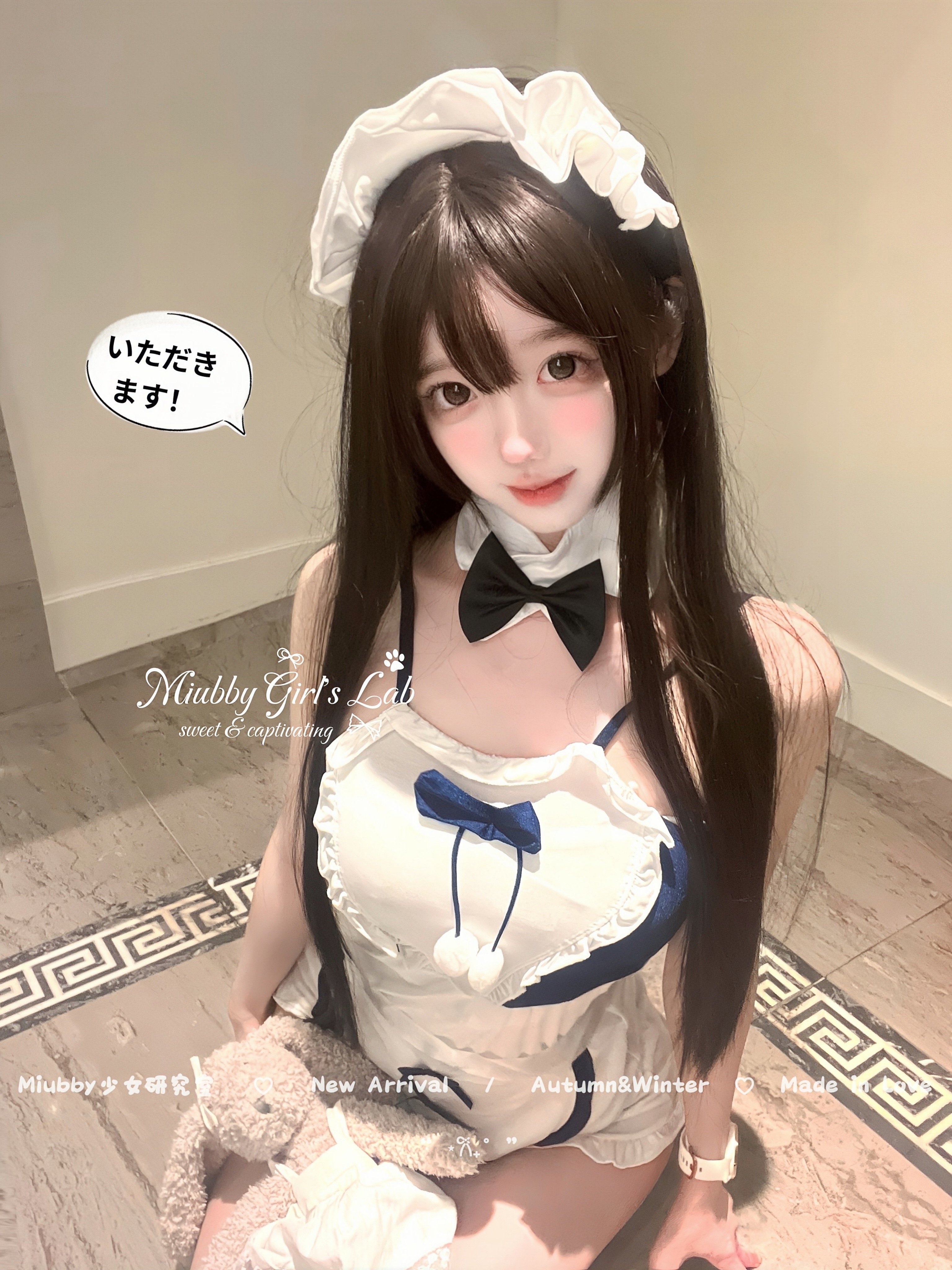 Miubby「萝系女仆」纯欲可爱性感蝴蝶结毛球吊带睡裙女仆制服套装