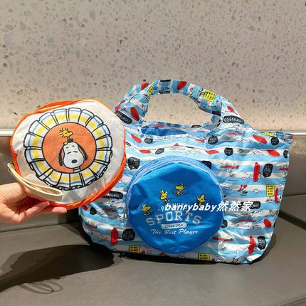 日系新款史努比可折叠大容量购物袋卡通抽绳防水收纳包野餐包