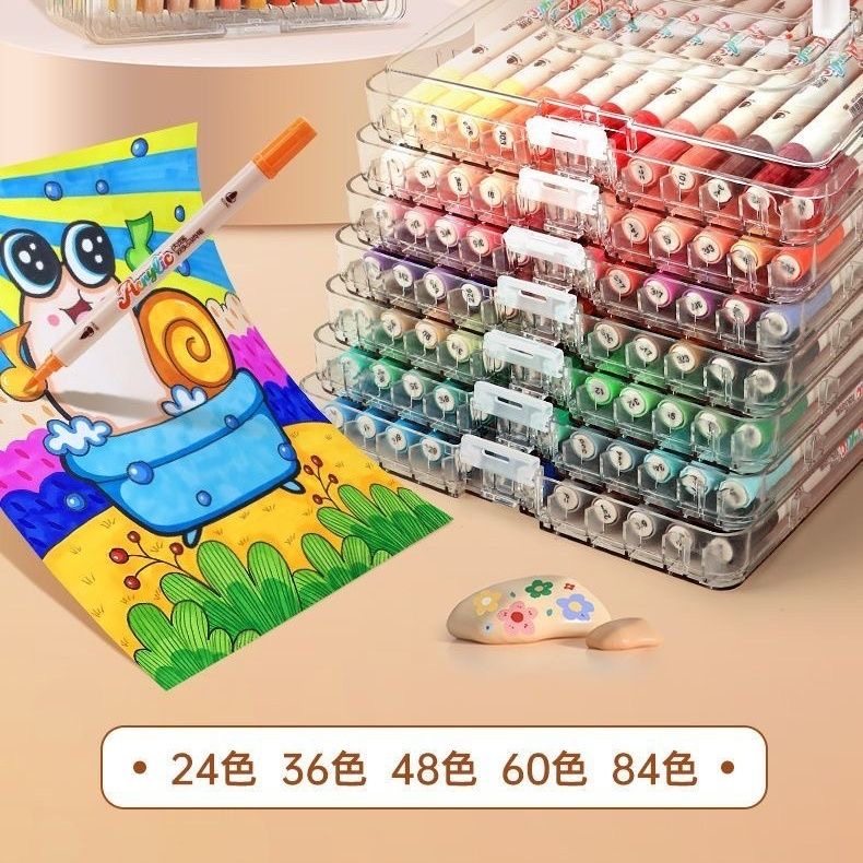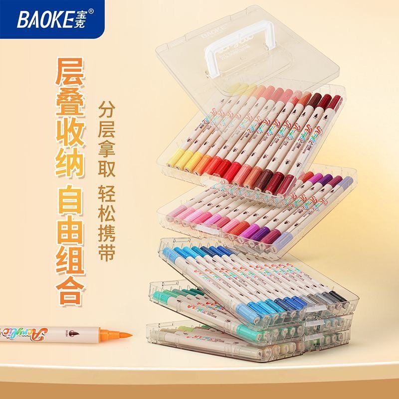 宝克双头丙烯马克笔不透色60色软头可叠色儿童美术学生绘画水彩笔