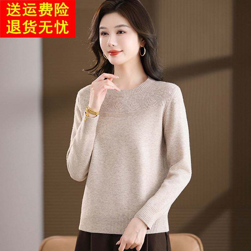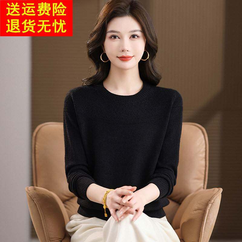 鄂尔多斯市圆领高档纯羊毛针织衫女秋冬内搭极简风上衣打底衫毛衣
