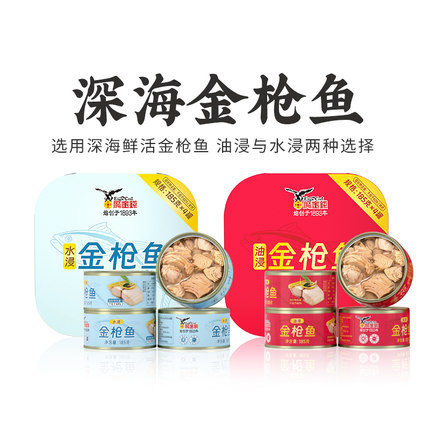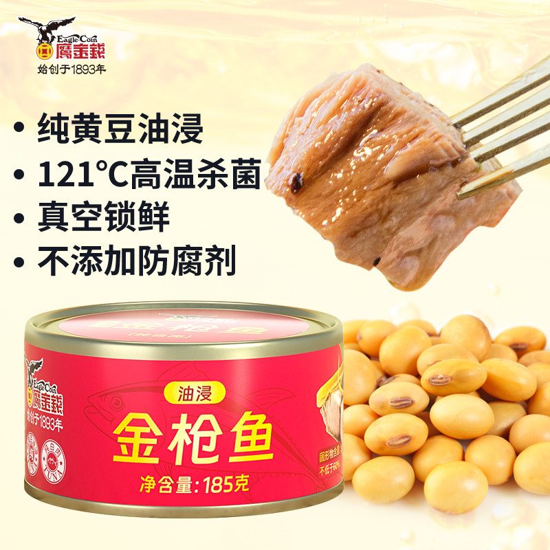 【鹰金钱】水浸/油浸金枪鱼罐头185G三明治蔬菜沙拉健身搭档正品
