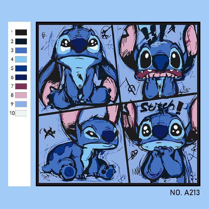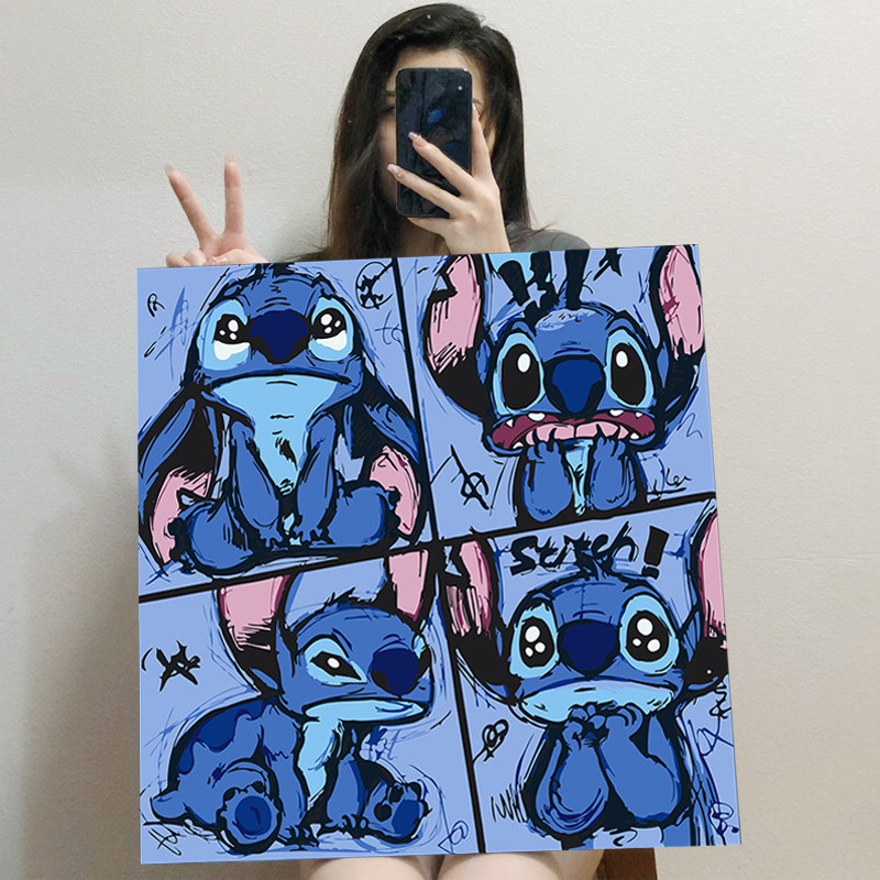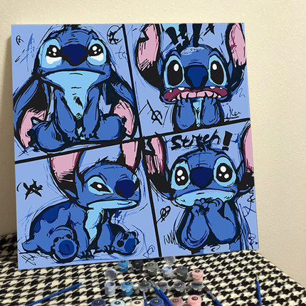 史迪仔diy数字油画史迪奇动漫卡通手工填充涂色手绘填油彩装饰画