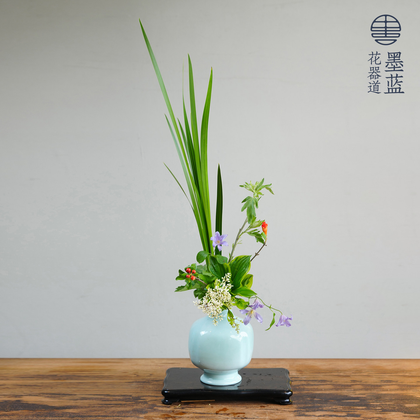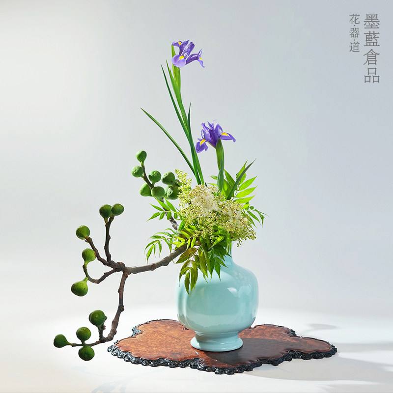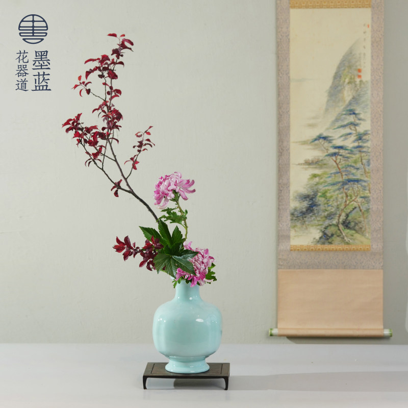 小原流豆青瓶 花瓶花器瓶花文人调投入花中式日式花道插花 送底座