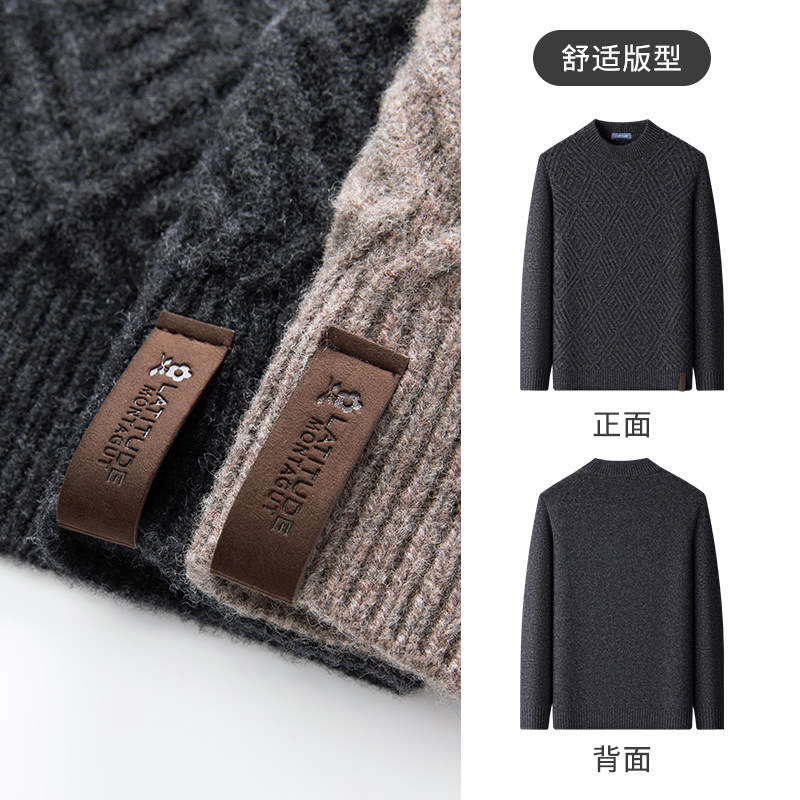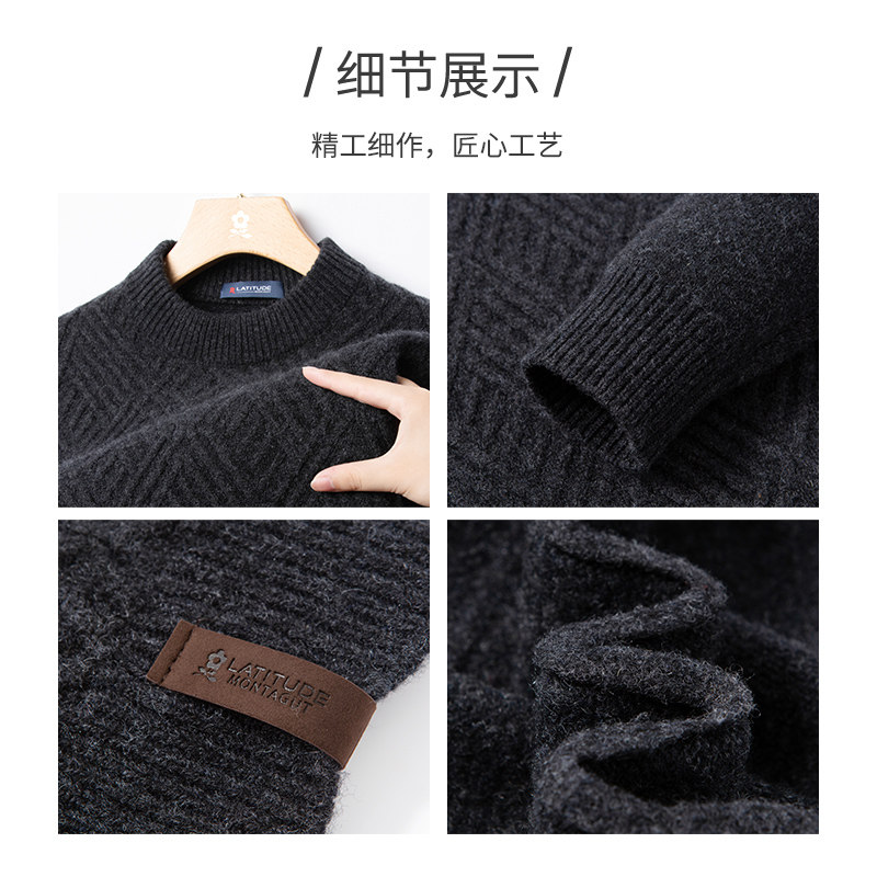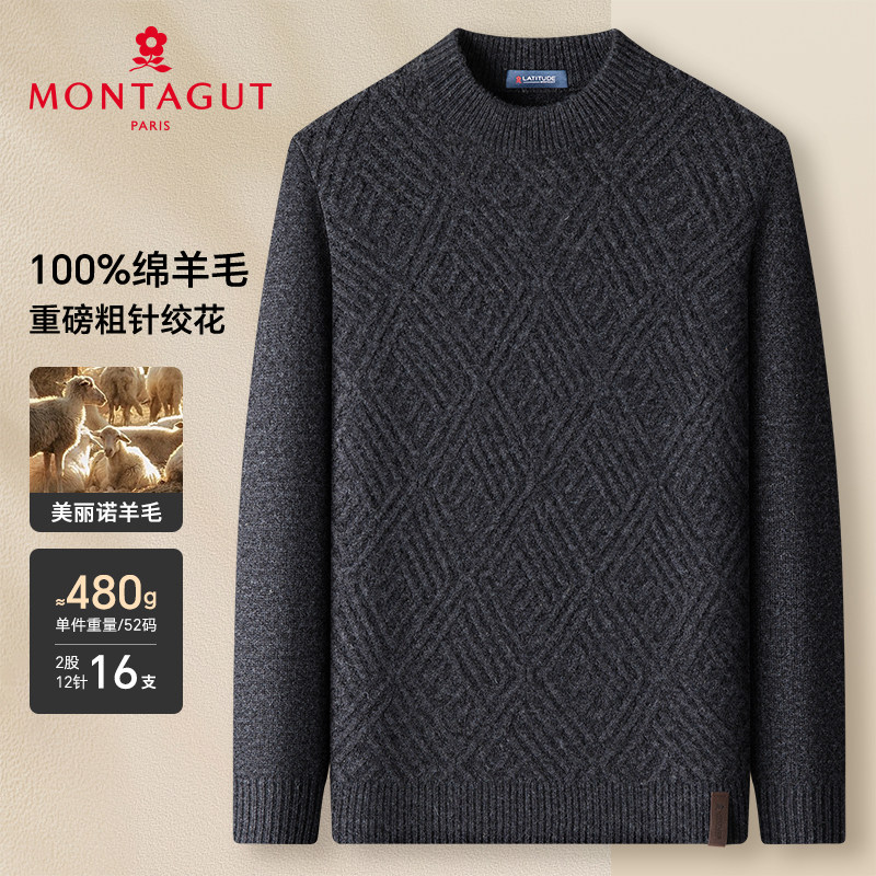 [100%绵羊毛/重磅加厚]梦特娇冬季纯羊毛衫男士圆领绞花毛衣保暖J