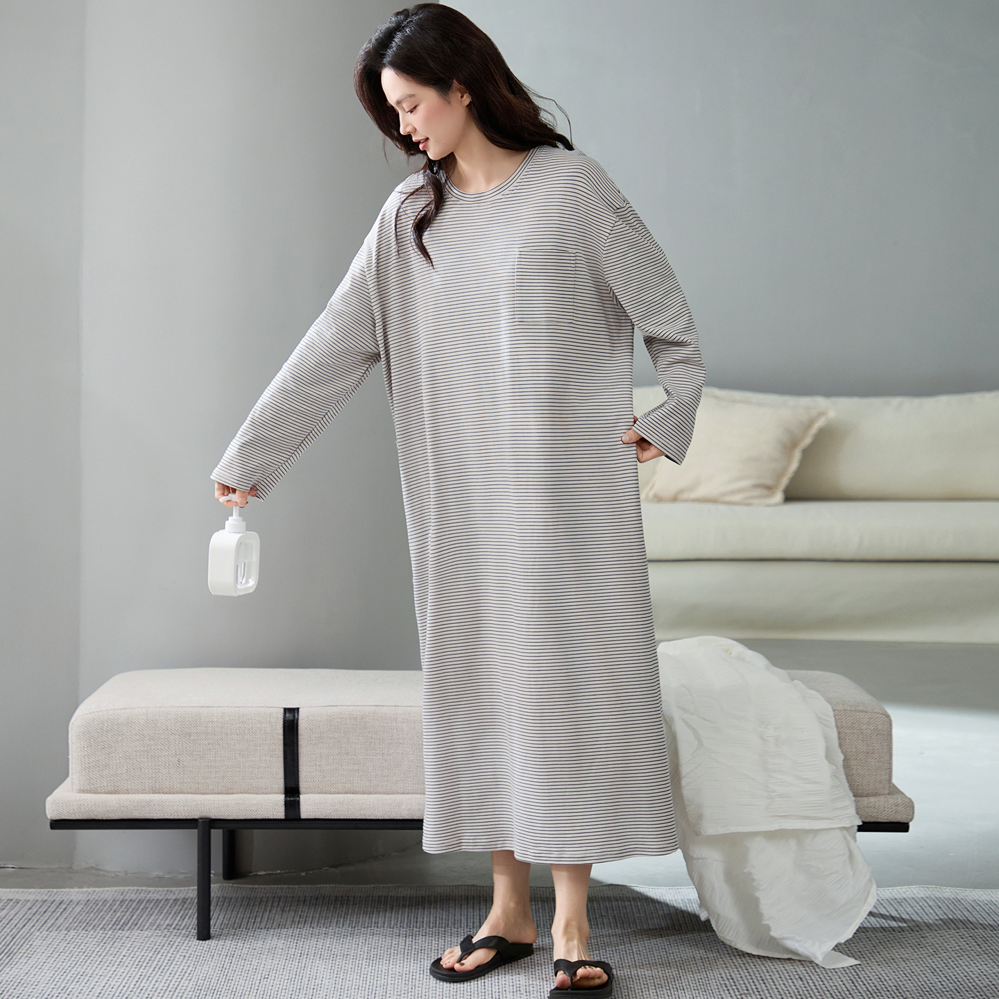 宜而爽纯棉睡裙女长袖薄款宽松睡衣裙秋季中长款全棉连衣裙家居服
