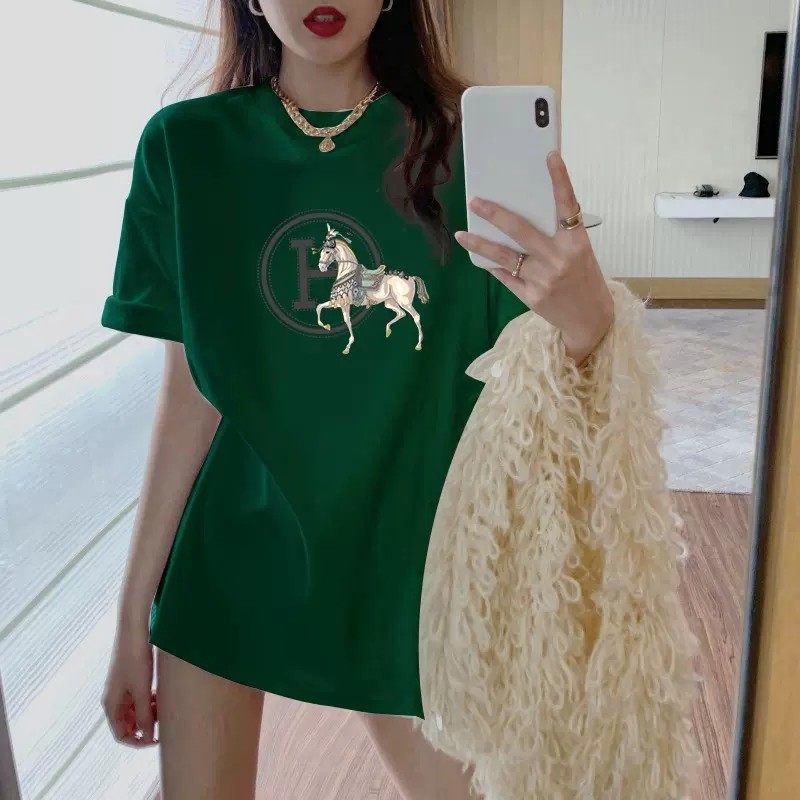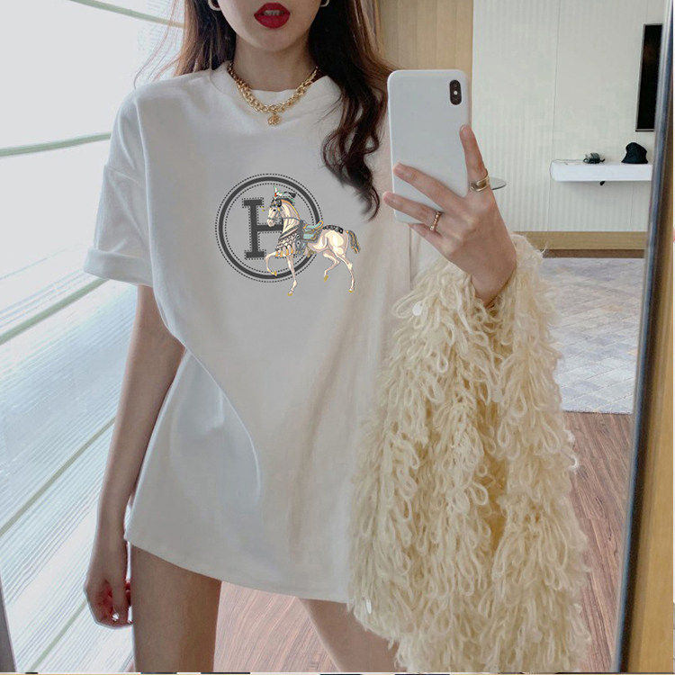 粉色战马T恤女2026年新款夏季ins潮牌欧货大版宽松中长款短袖上衣