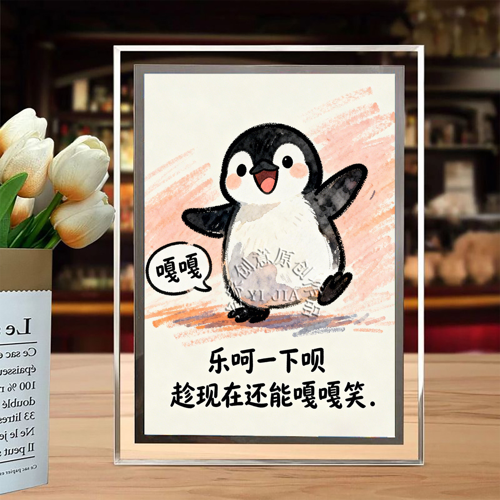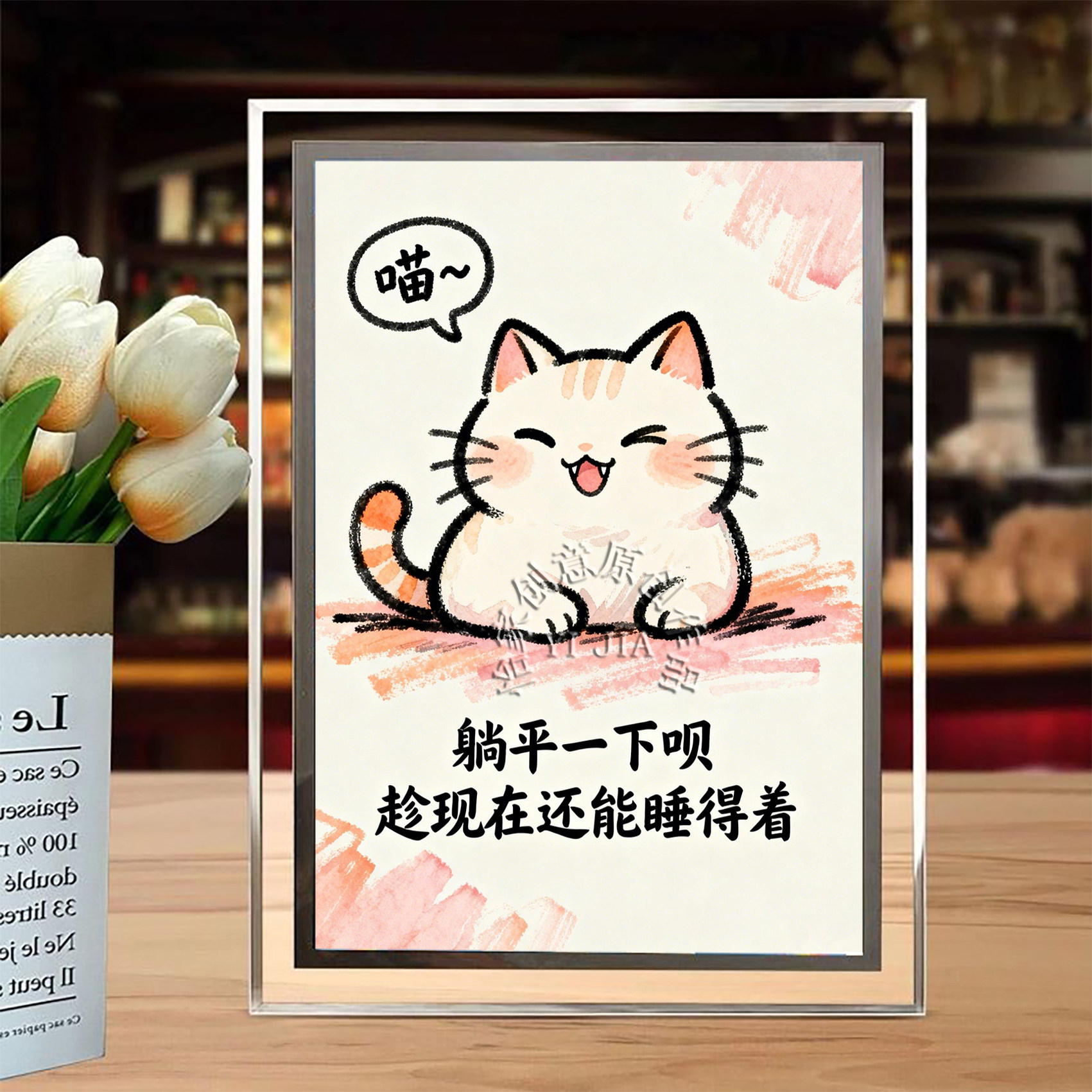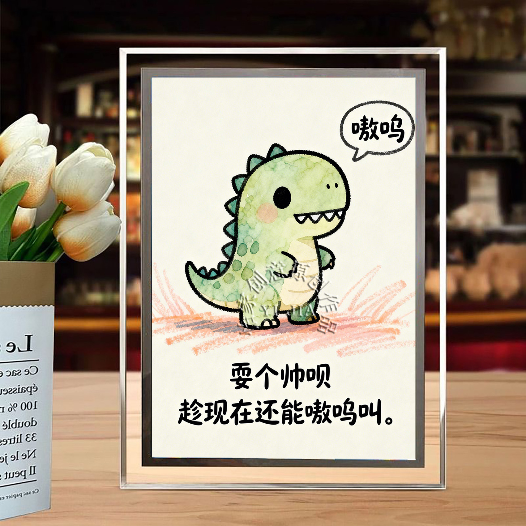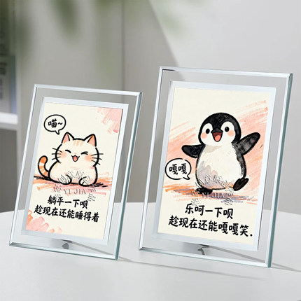 可爱卡通动物桌面摆台画水晶相框摆件创意装饰画治愈高级新款礼物
