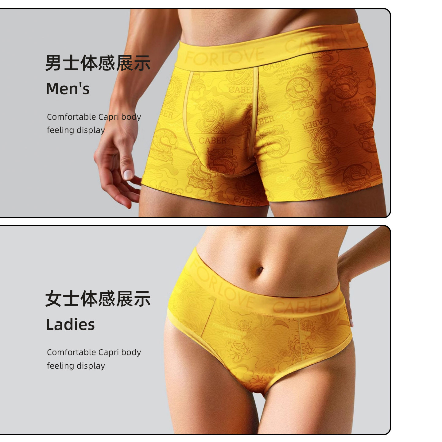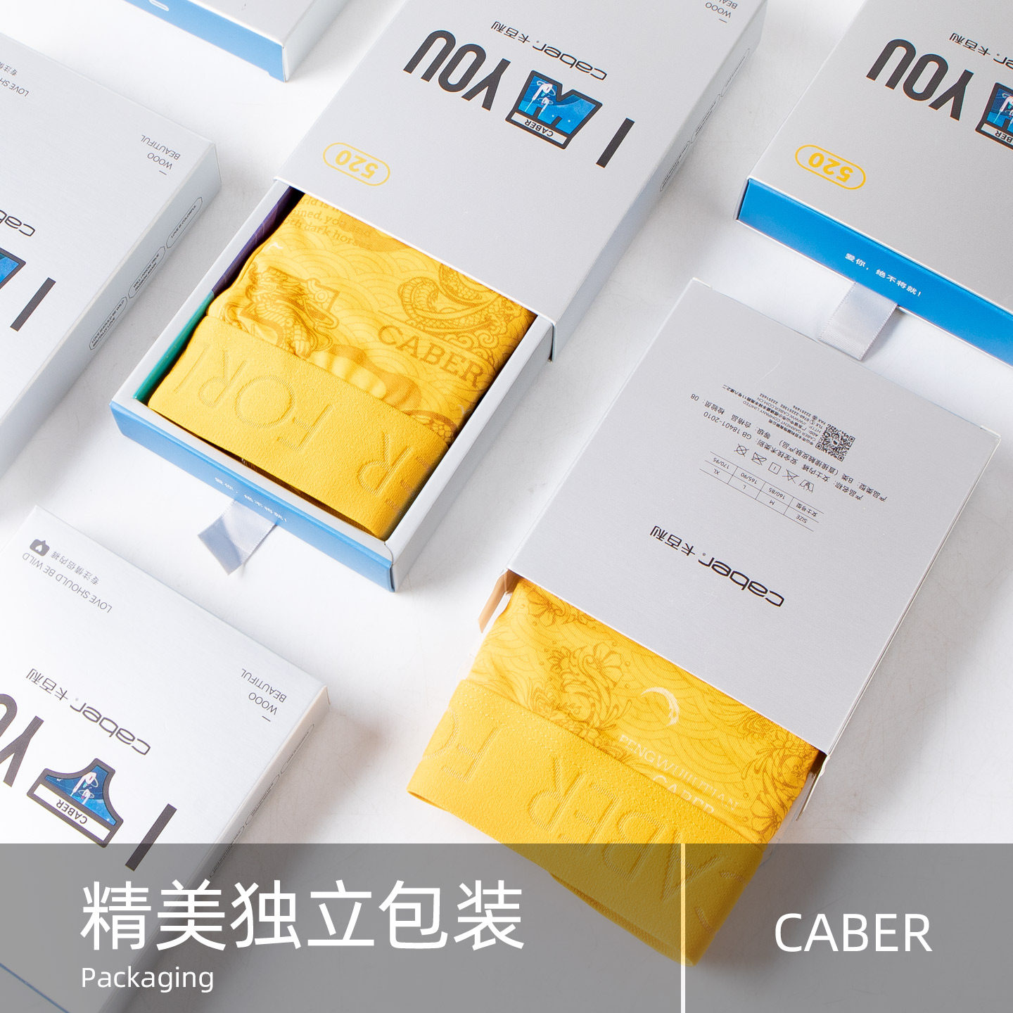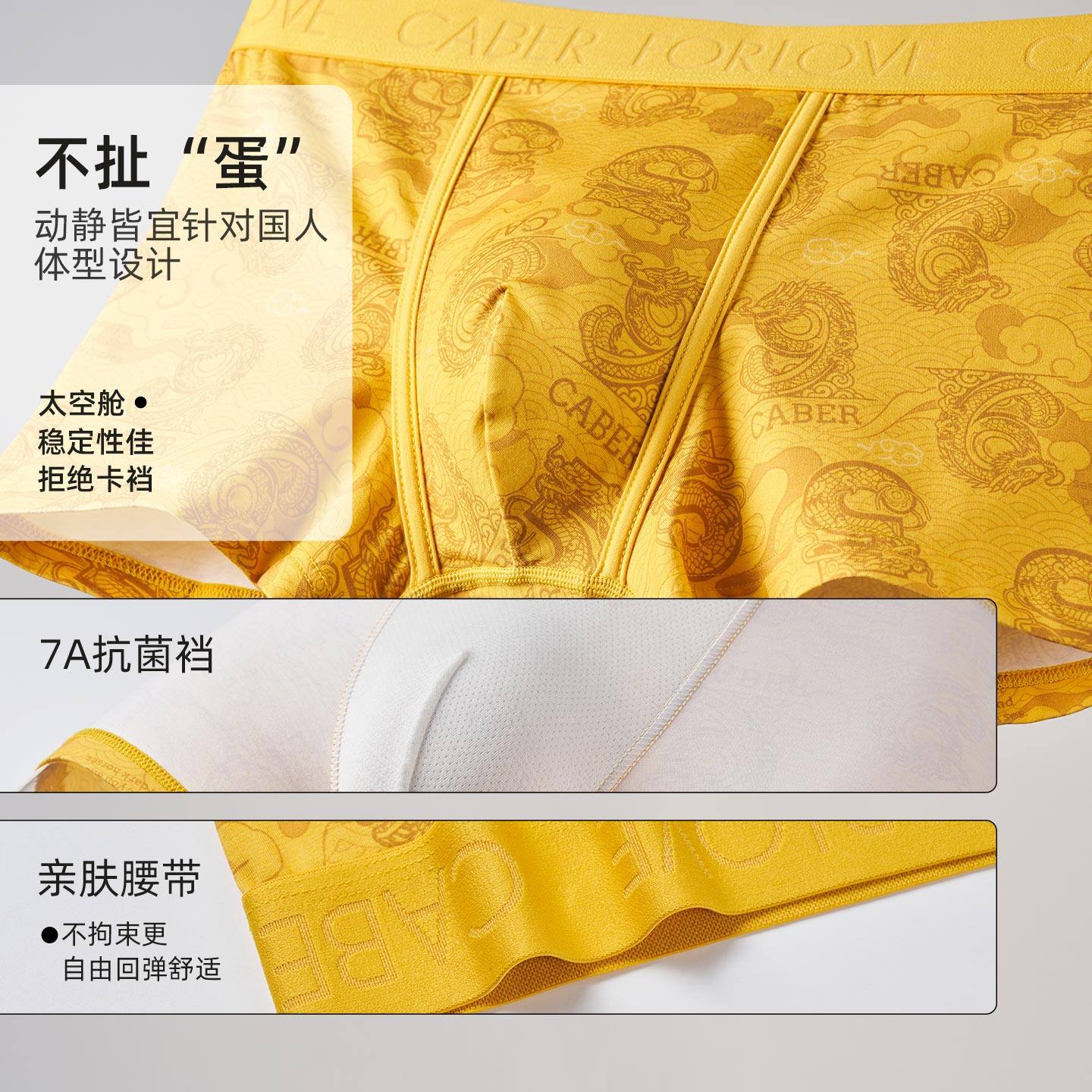 caber/卡百利2026新款九五之尊明帝黄宽腰带舒适抗菌礼盒情侣内裤