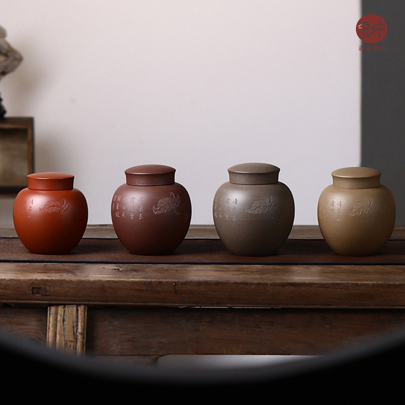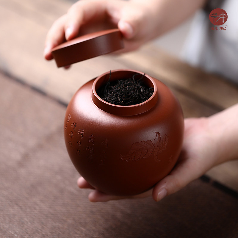 宏中 宜兴紫砂茶叶罐一斤装普洱茶醒茶罐防潮家用密封茶罐茶缸