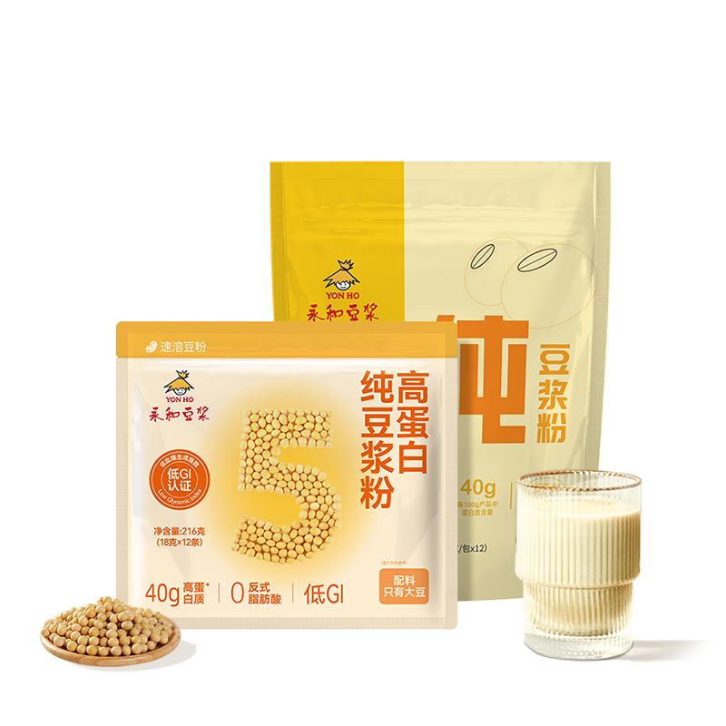 永和豆浆纯豆浆粉低GI0添加糖高蛋白早餐代餐冲饮216g*2