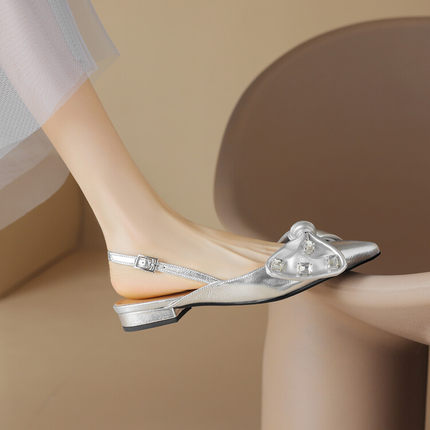 新款仙女风尖头蝴蝶结优雅舒适女鞋夏季包头后空平底凉鞋时尚单鞋