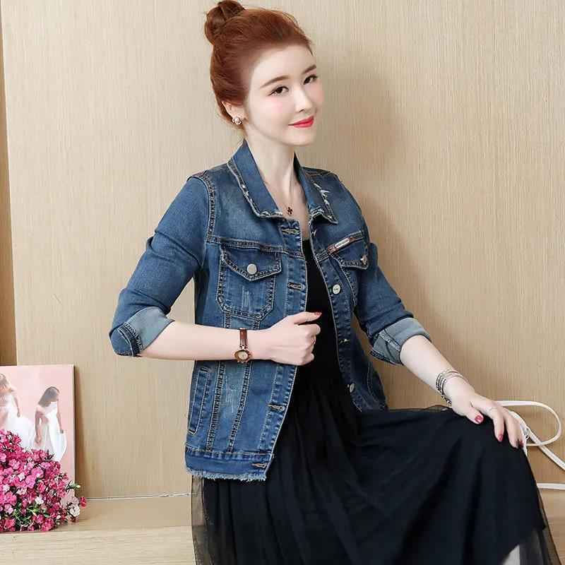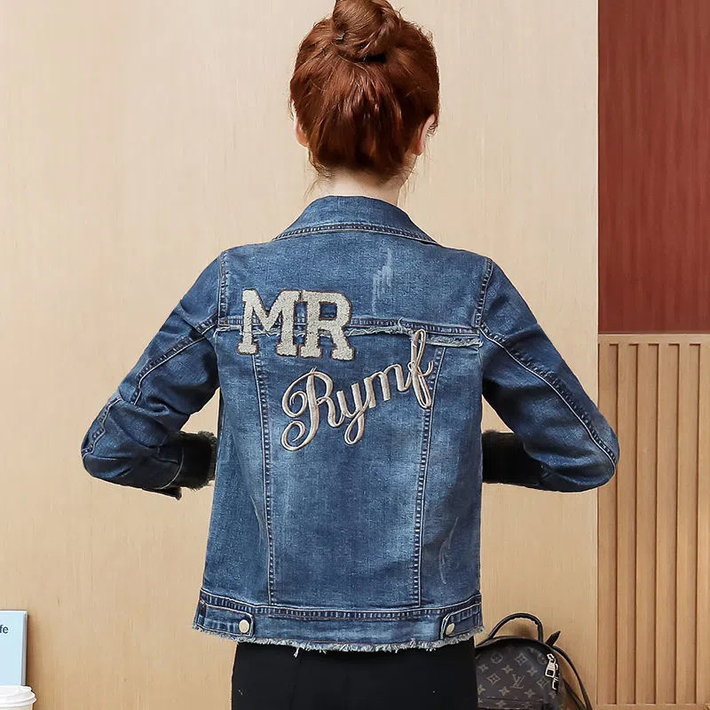2025春秋新款大码修身显瘦弹力牛仔外套女短款刺绣牛仔衣夹克上衣