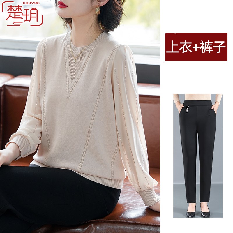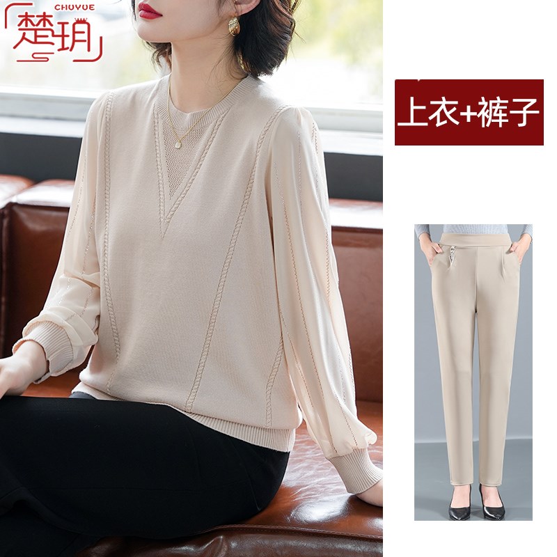 妈妈秋装新款小衫洋气时尚套装中老年人T恤40岁50春秋季打底上衣