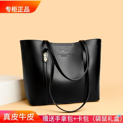 袋鼠真皮手提包女包2025新款大容量简约单肩斜挎女包时尚气质大包