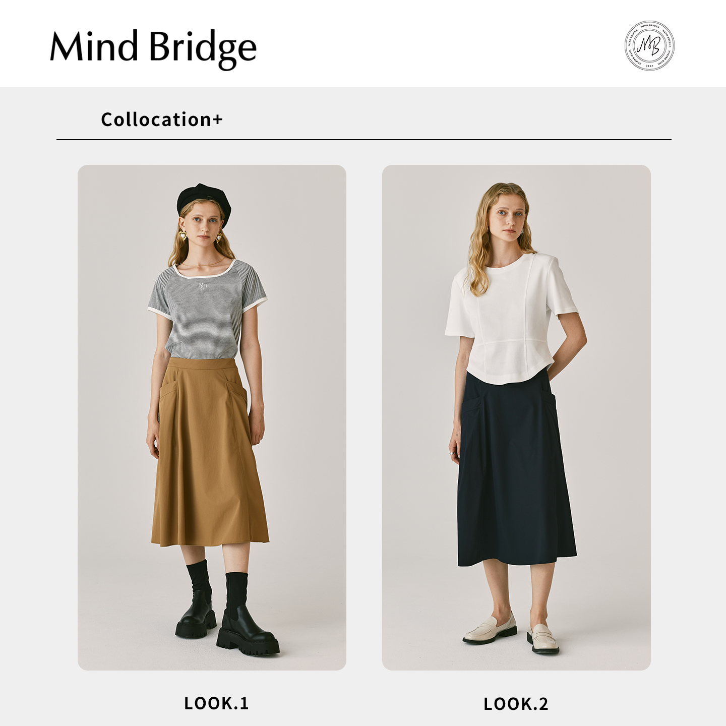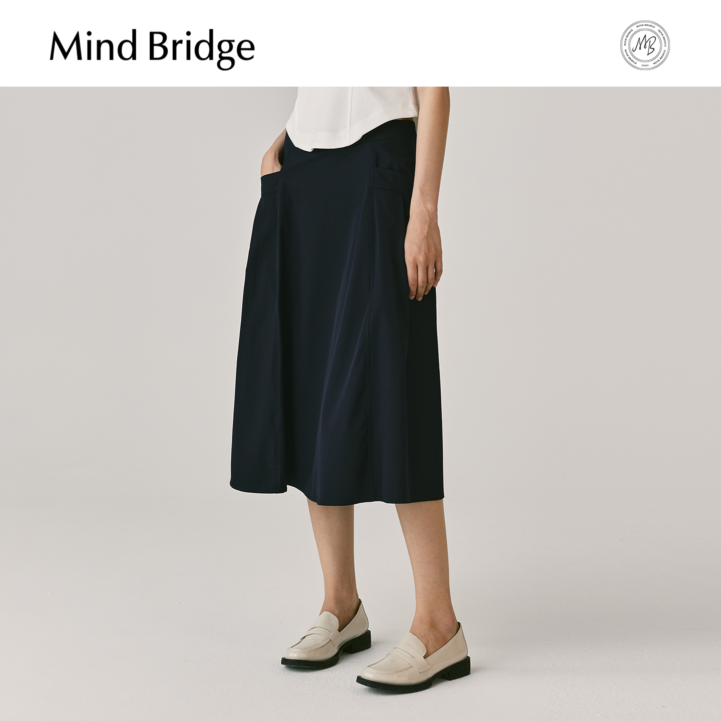 MB MindBridge百家好简约通勤纯色半身裙夏季女士高腰显瘦A字裙