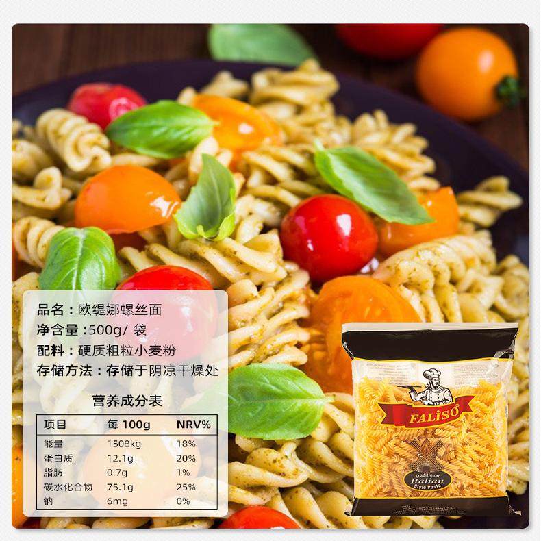 进口意大利面通心粉螺旋意面条500g袋速食意粉低脂空心粉螺丝面