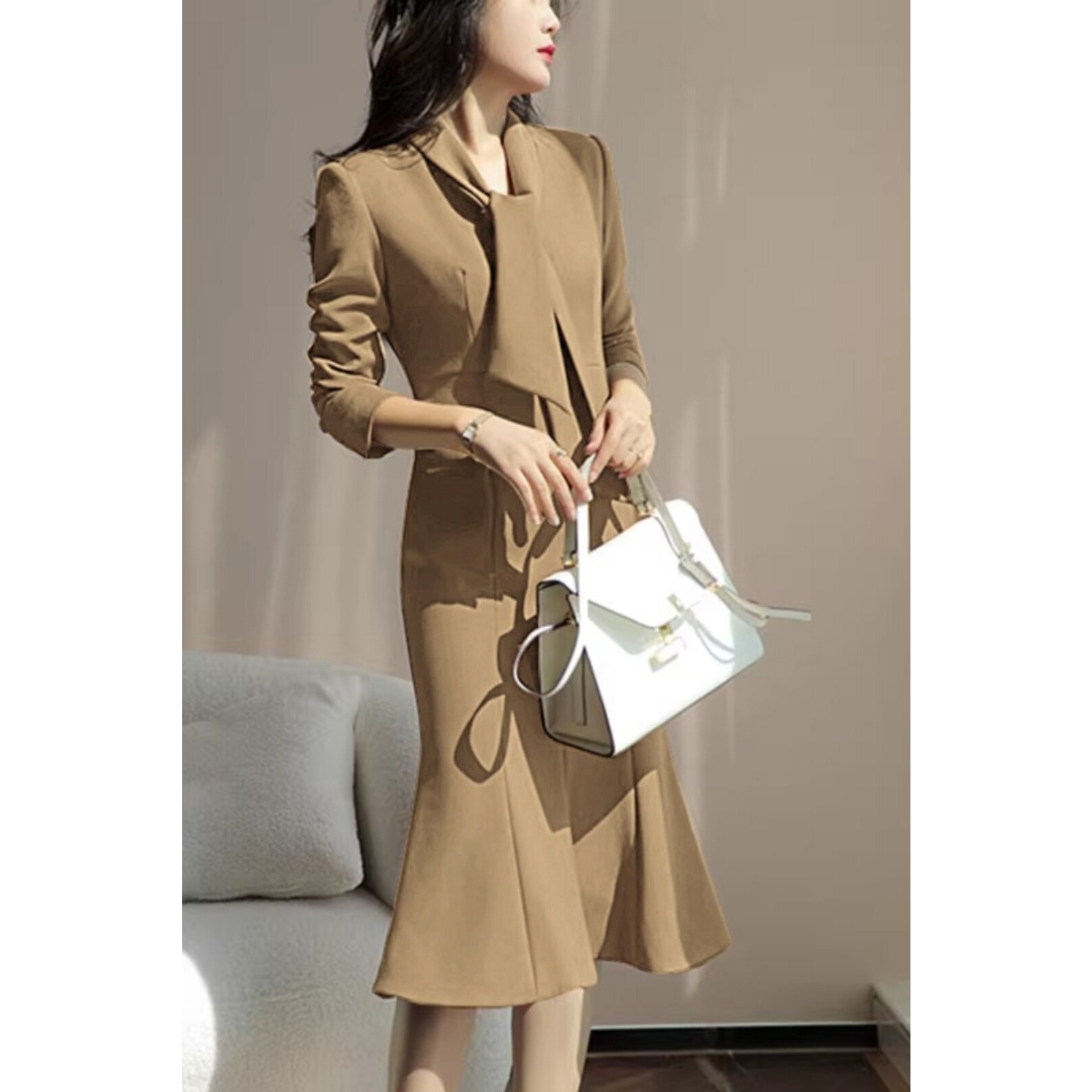 气质优雅名媛过膝长裙2025年女装设计感轻奢鱼尾连衣裙子2225