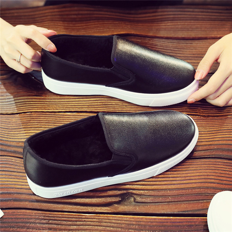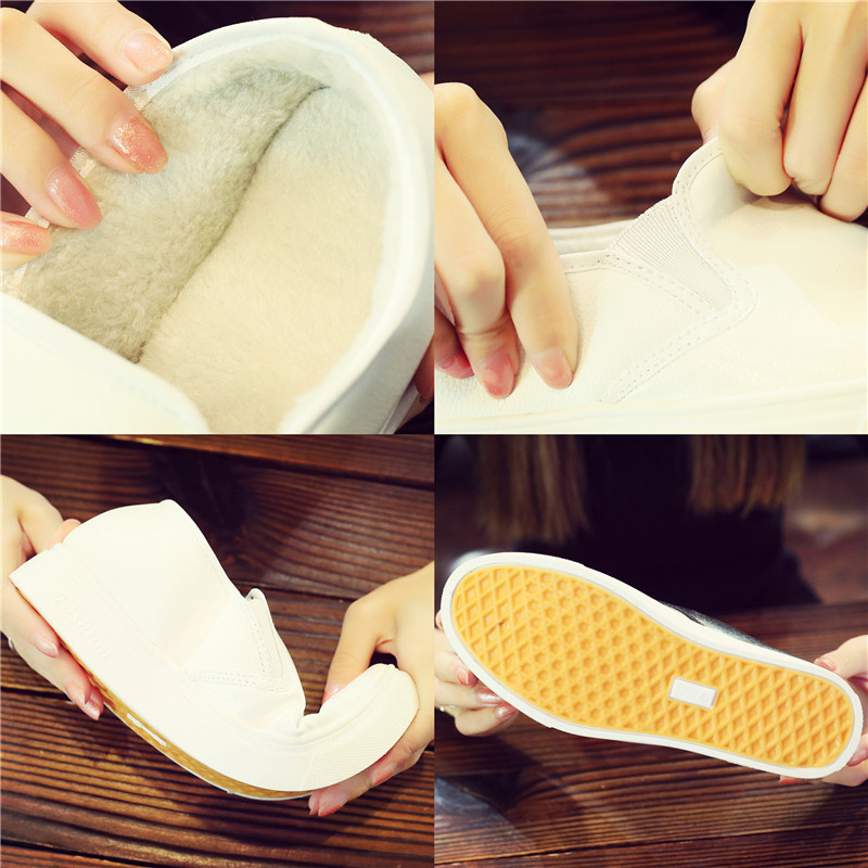 冬季新款皮面棉鞋女靴子加绒保暖防滑学生小白鞋女休闲板鞋秋