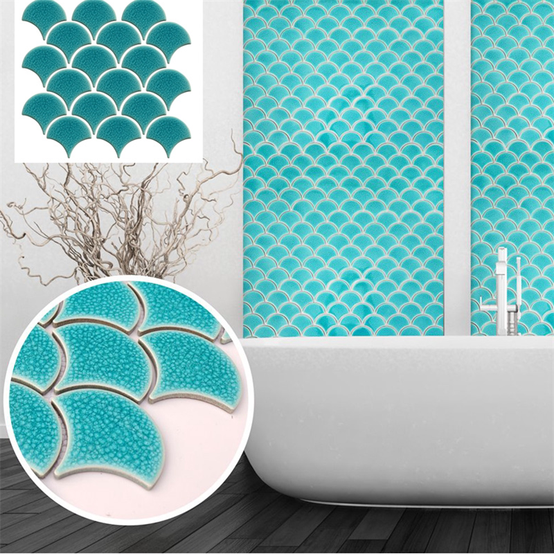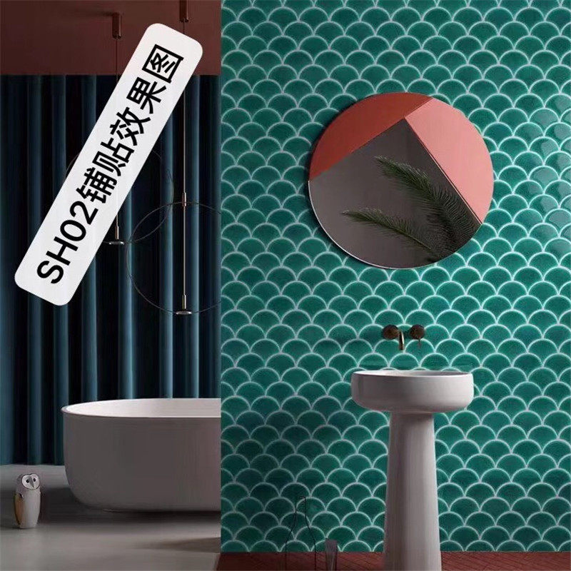 陶瓷冰裂鱼鳞扇形马赛克游泳池水池卫生间浴室玄关电视背景墙瓷砖