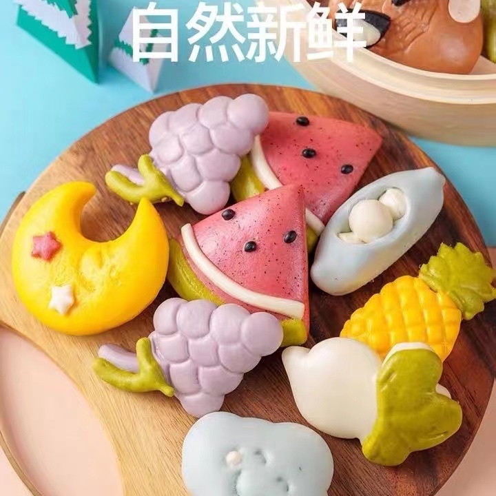 卡通奶香馒头果蔬花卷儿童速食早餐半成品卡通包动物雪糕速冻面点