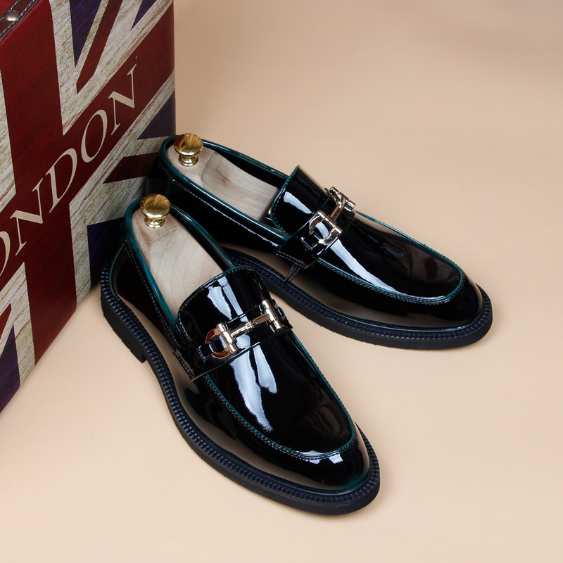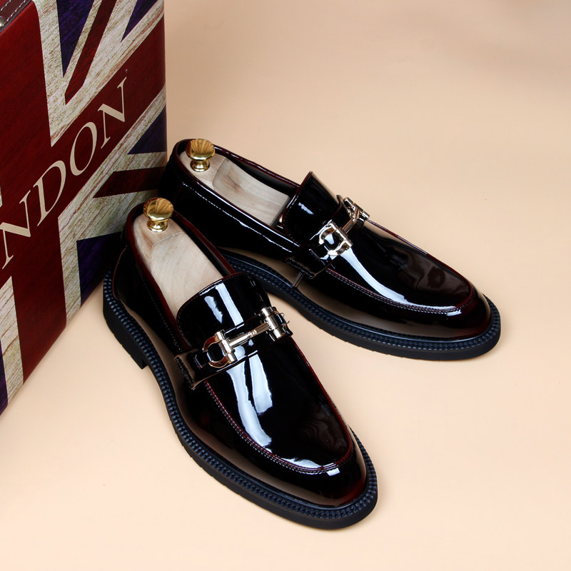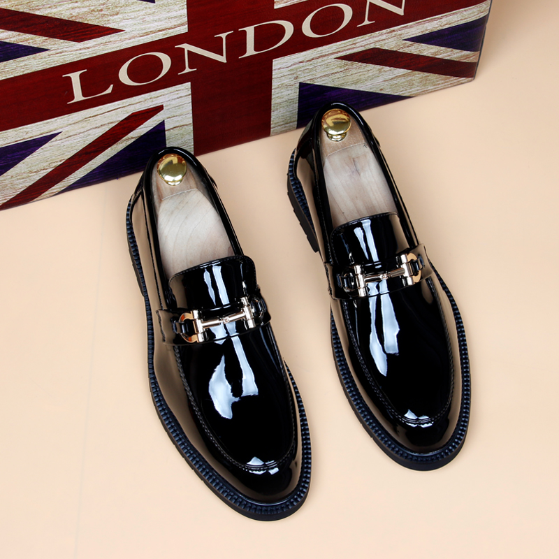 休闲皮鞋男真皮正装商务英伦亮面一脚蹬男鞋青年内增高懒人豆豆鞋