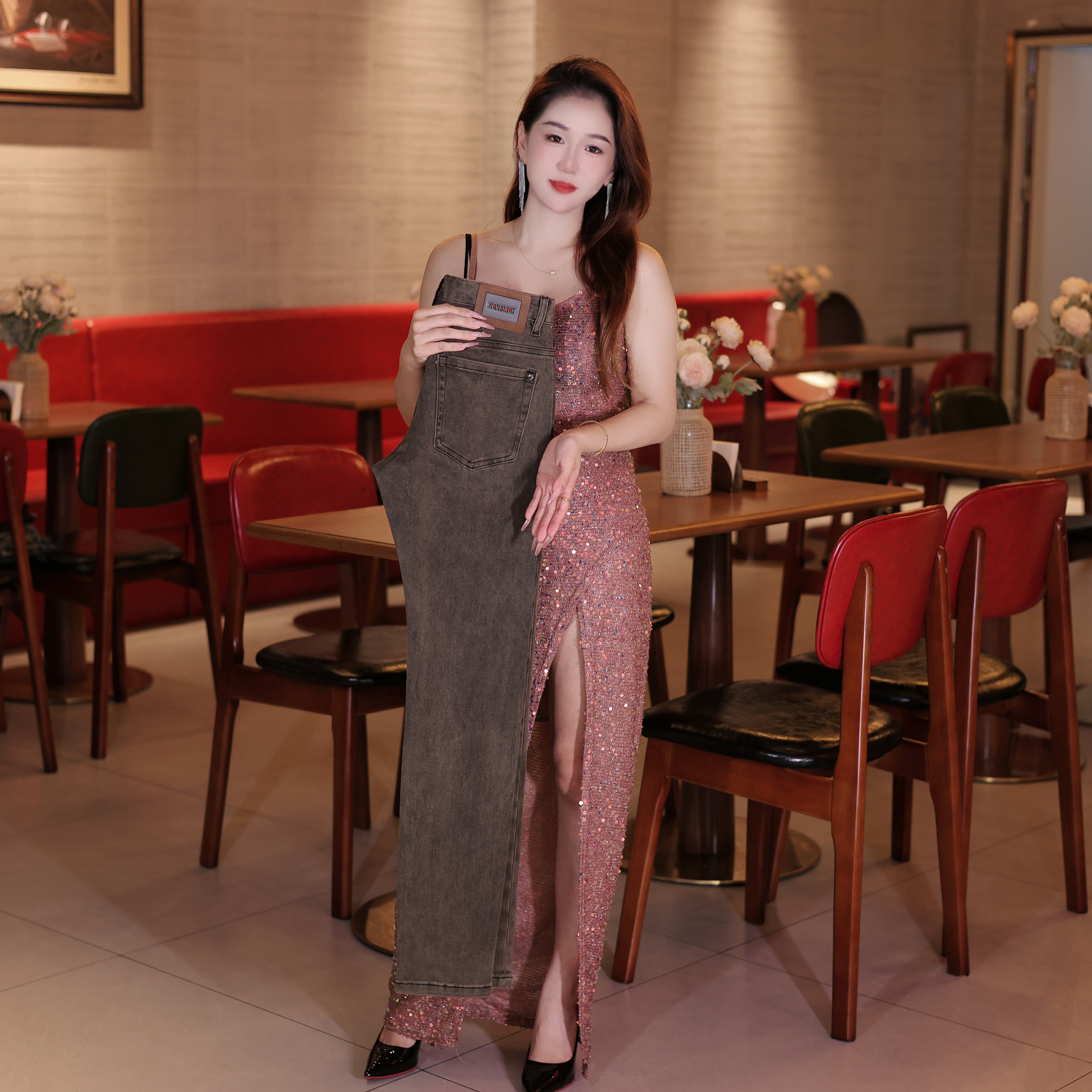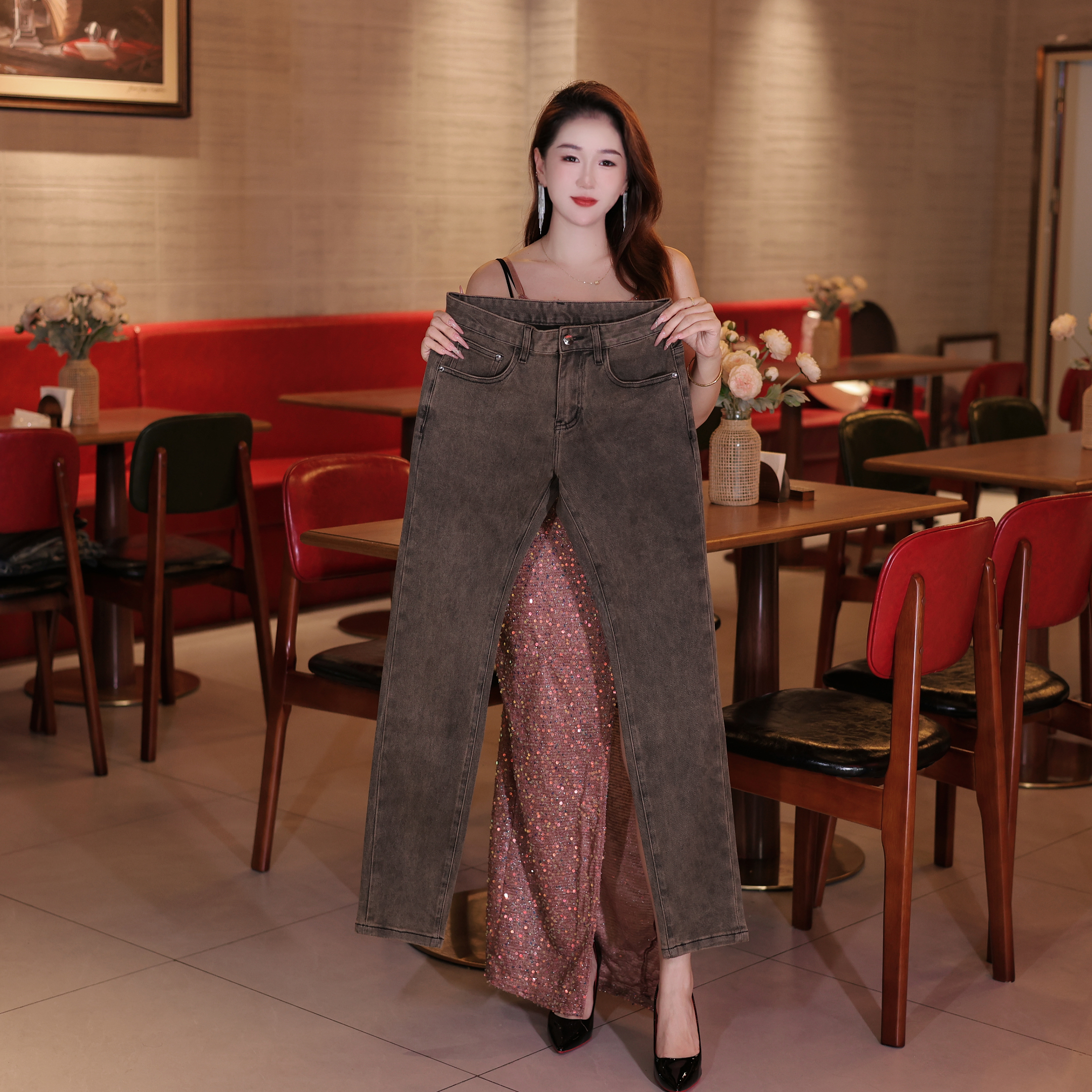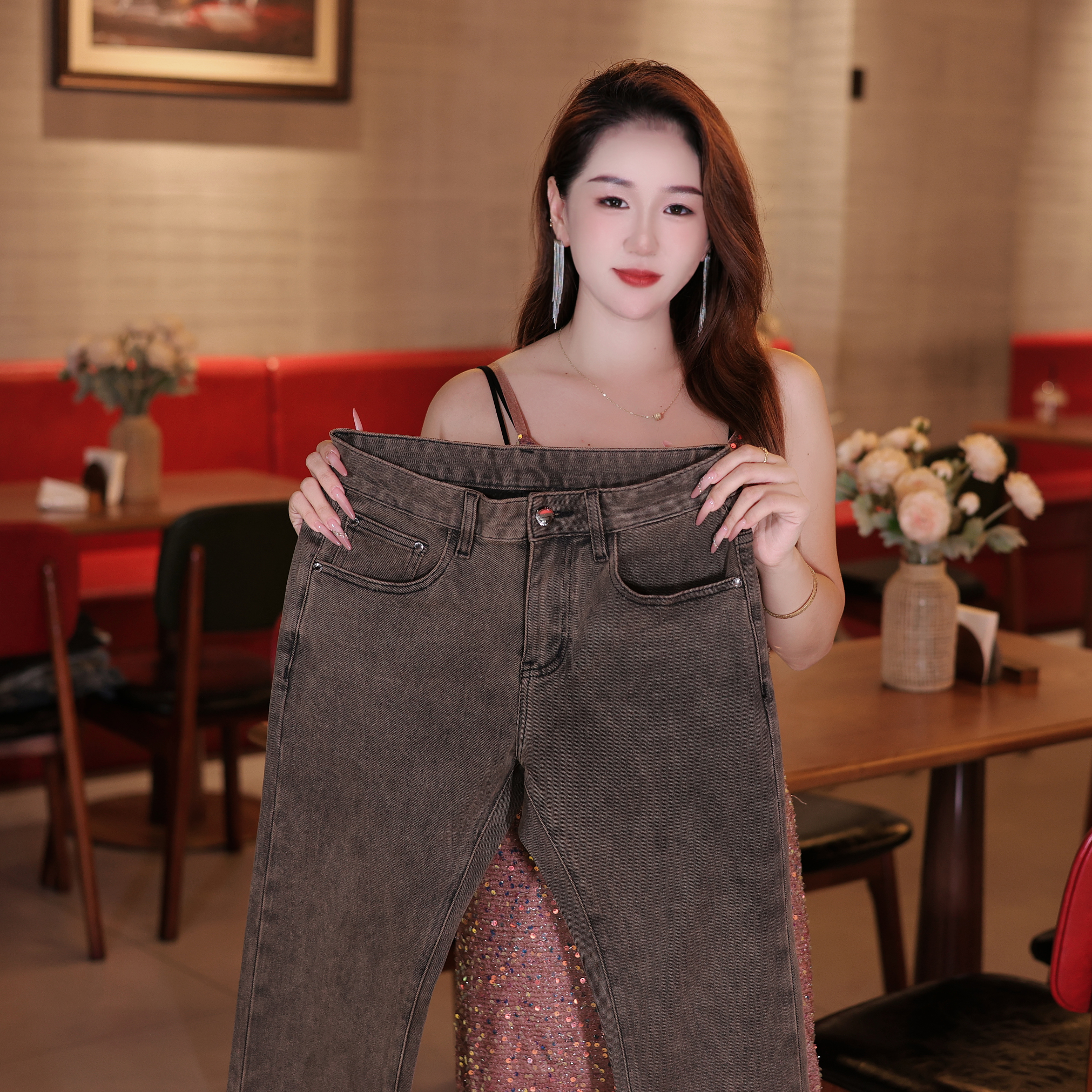 高奢秋季高端修身显瘦百搭潮流棕色男士修身小脚牛仔裤显瘦