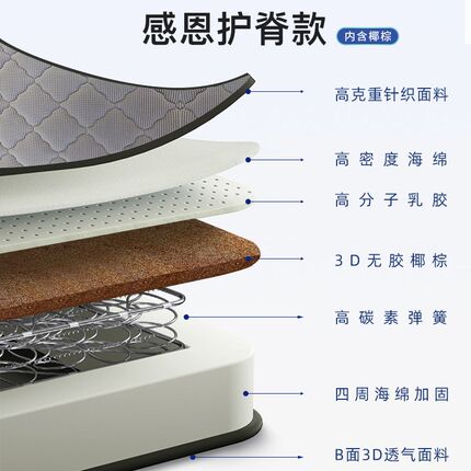 宏益床垫 感恩护脊偏硬/乳胶款适中 22cm 椰棕高碳素弹簧四周加固