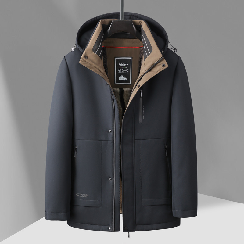 中老年人加绒男棉衣加肥加大码宽松胖子棉袄父亲中长款拆卸毛内胆