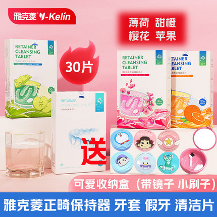 雅克菱正畸保持器清洁片30片隐形牙套假牙义齿泡腾片送盒子收纳盒