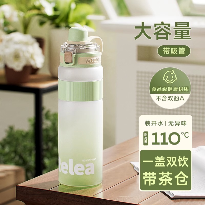 物生物运动水杯女生超大容量健身水壶夏季耐高温带吸管杯子男喝水