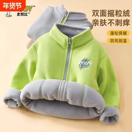 史努比男童加绒外套秋季2026儿童摇粒绒上衣中大童童装秋冬装酷帅