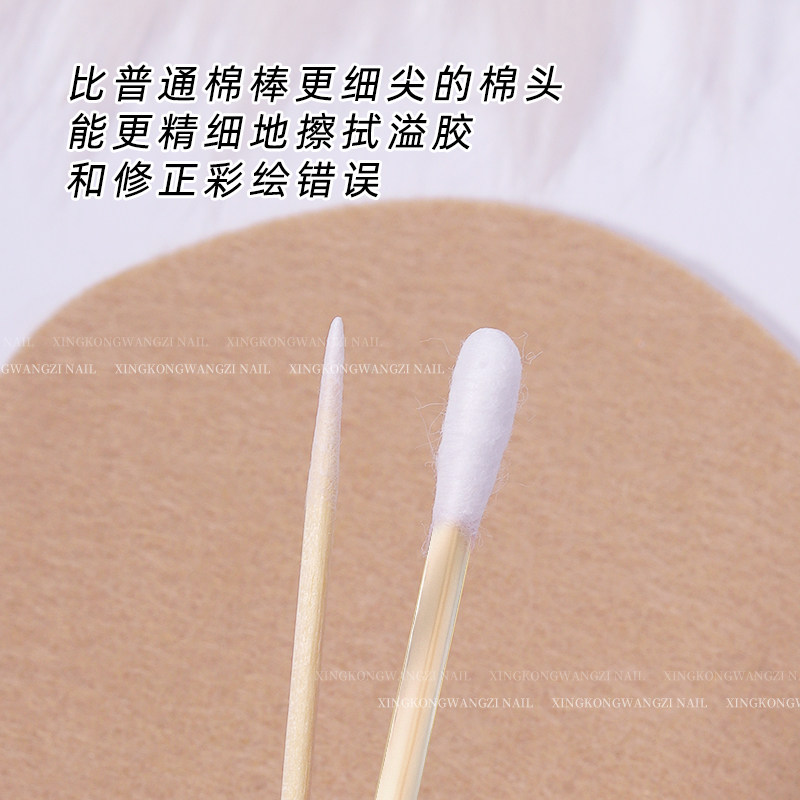美甲尖头防溢胶棉签去指甲缝污垢清理一次性清洁专用棉棒美甲工具