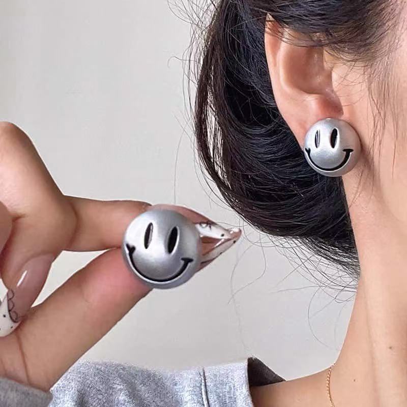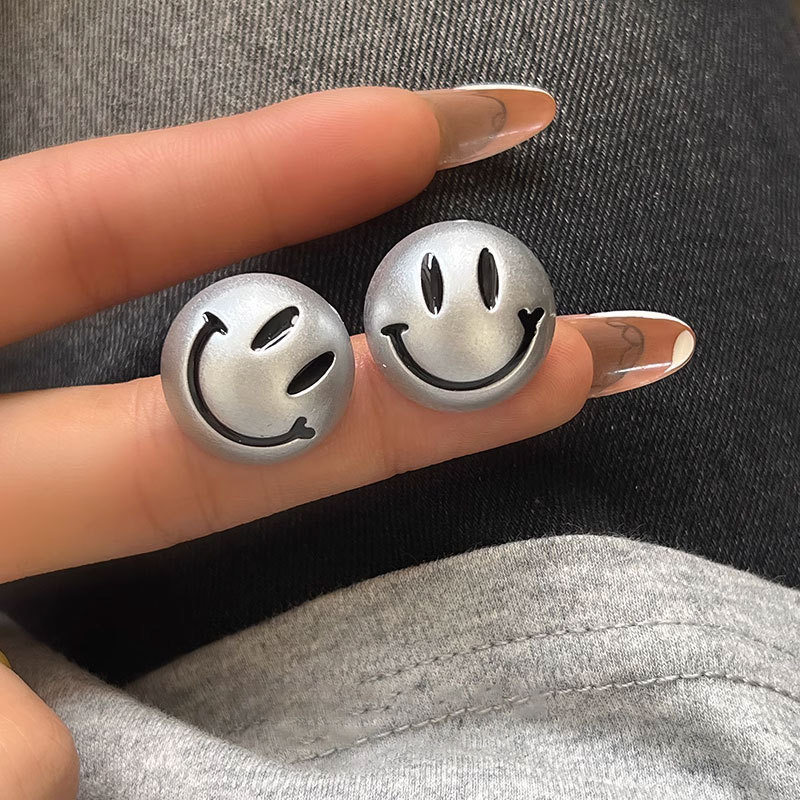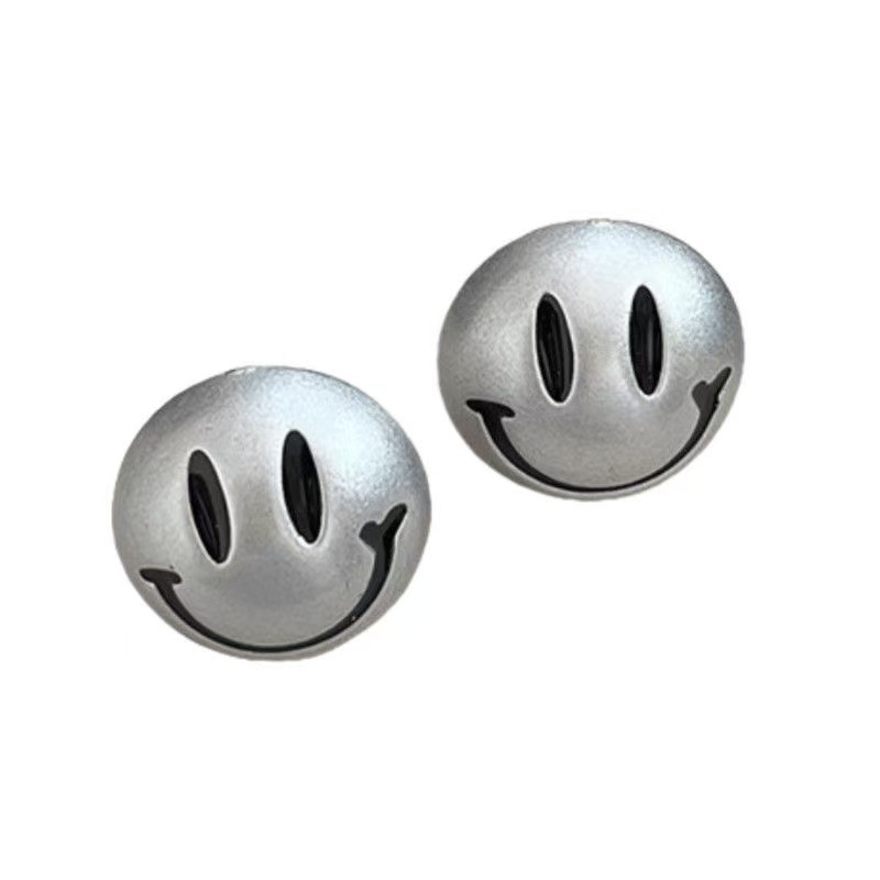 秋冬新款复古圆形笑脸耳钉女银针小众个性毛绒绒气质美拉德耳环